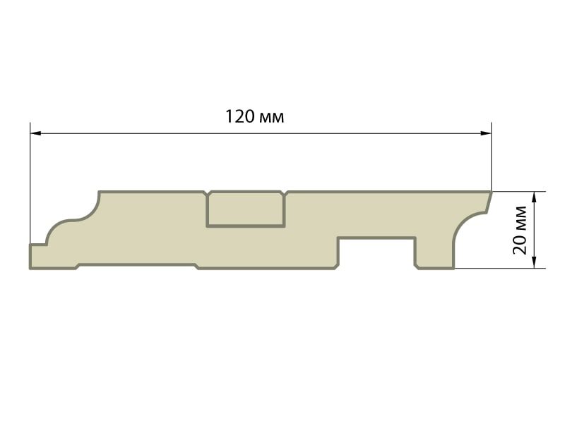 Плинтус 120х20мм повышенной высоты компании Косвик предназначен для помещений с высокими потолками и высокими дверными проемами. Плинтус поставляется в длине 2100мм.