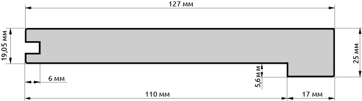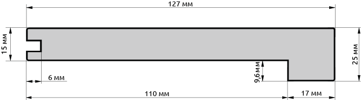 Ступенька служит для оформления выхода паркетного пола к лестнице, а так же может быть использована для оформления каждого элемента лестницы. Ступенька 127х19мм предназначена для трехслойной паркетной доски толщиной 19.05 мм. Ступенька 127х15мм для трехслойной паркетной доски толщиной 15мм.