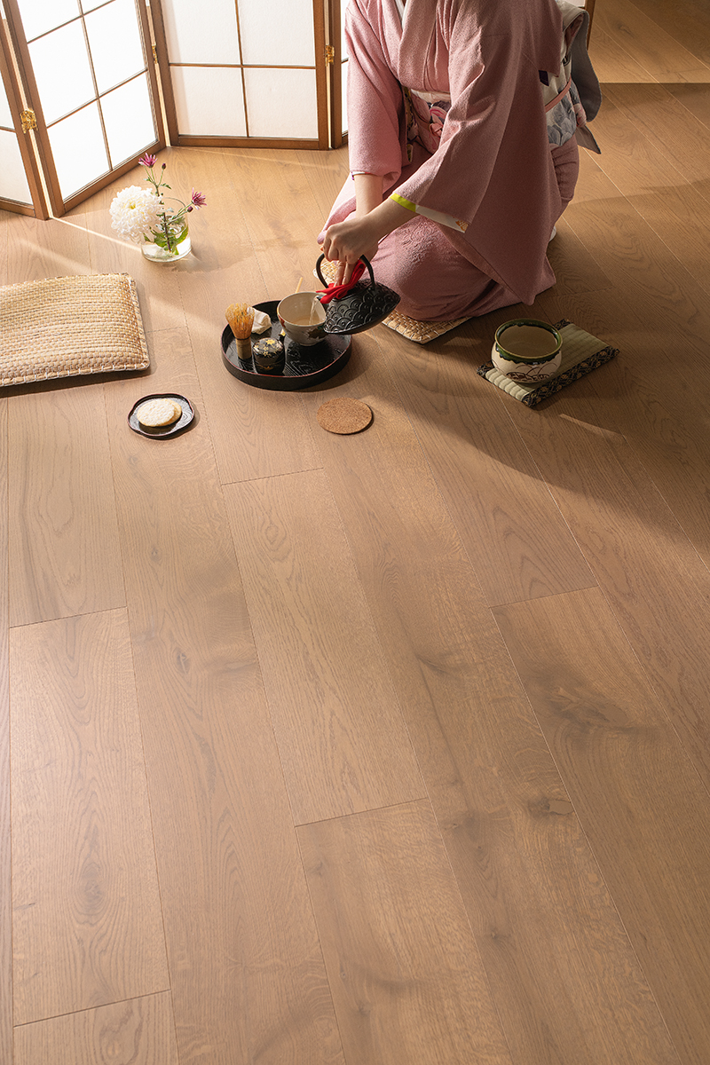 Названия не случайно связаны с японской культурой, основанной на внутреннем ощущении единения с природой. Достижению гармонии, осознанию красоты простых вещей и ценности каждого мгновения посвящена одна из древнейших традиций Страны Восходящего Солнца – чайная церемония. Простая, тонкая и ненавязчивая красота паркетного пола помогает создать атмосферу спокойствия и умиротворения.