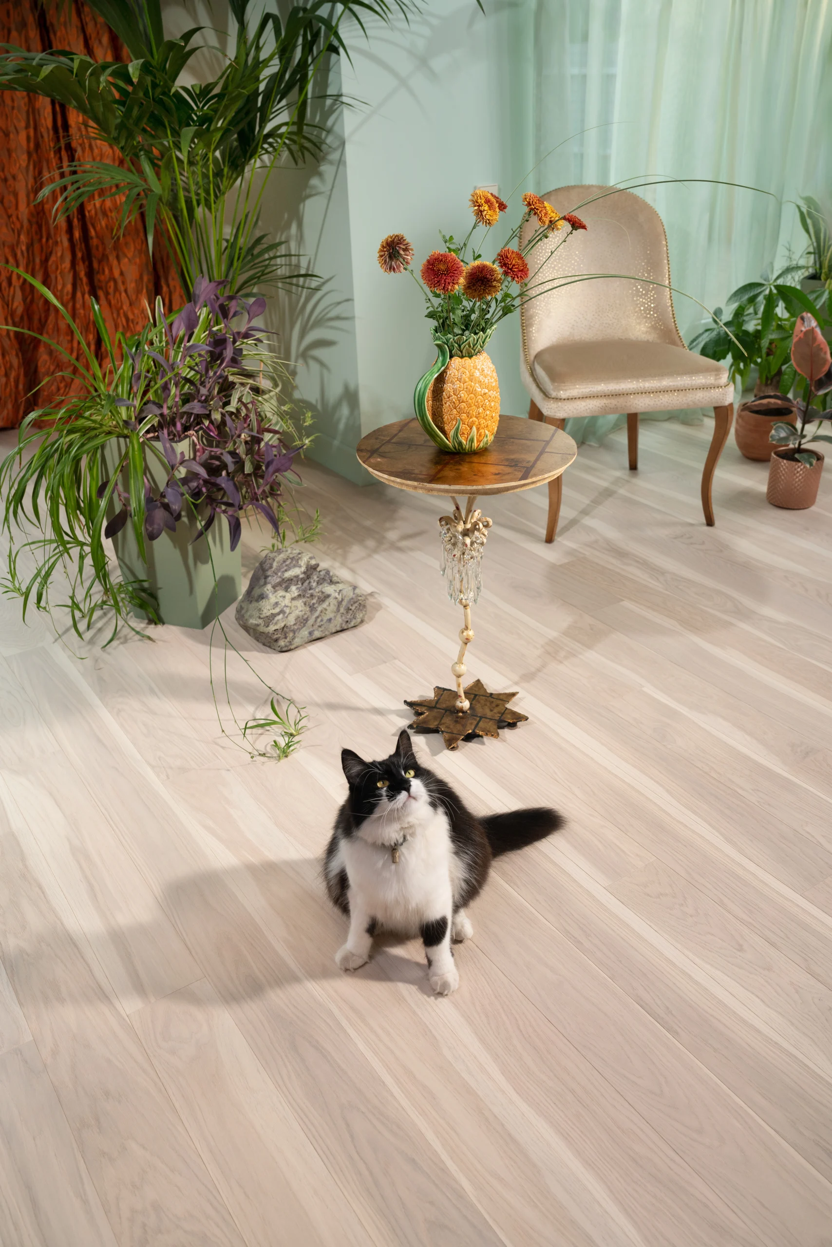 «Хотите летать, а не ходить по дому, – покрасьте пол в белый цвет», – справедливо советует известный американский дизайнер Джонатан Адлер. Светлый пол как нельзя лучше расширяет пространство, делает его легким и нарядным. Он универсален и сочетается с любым цветом – как чистый холст, на котором каждый может нарисовать свою картину. Все зависит от того, чем вы наполните это пространство. Здесь будут уместны интересные, яркие, эклектичные предметы и выразительные фактуры в мебели и отделке. Есть где развернуться фантазии.