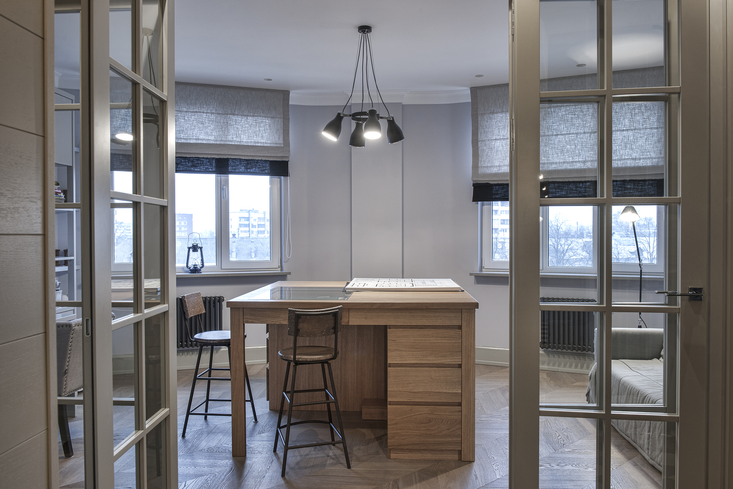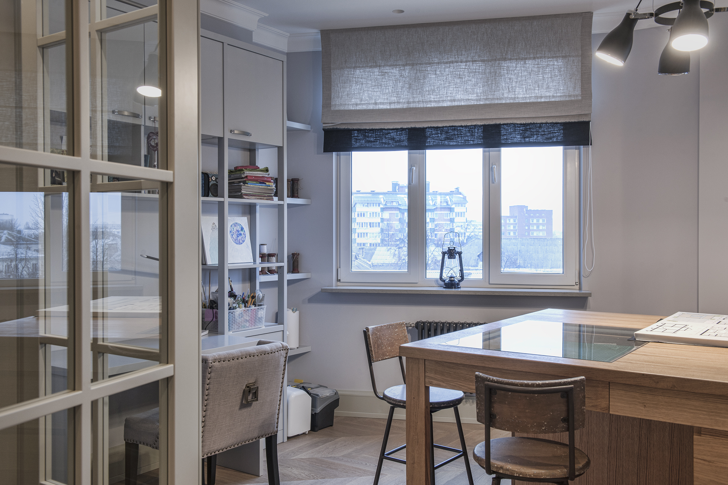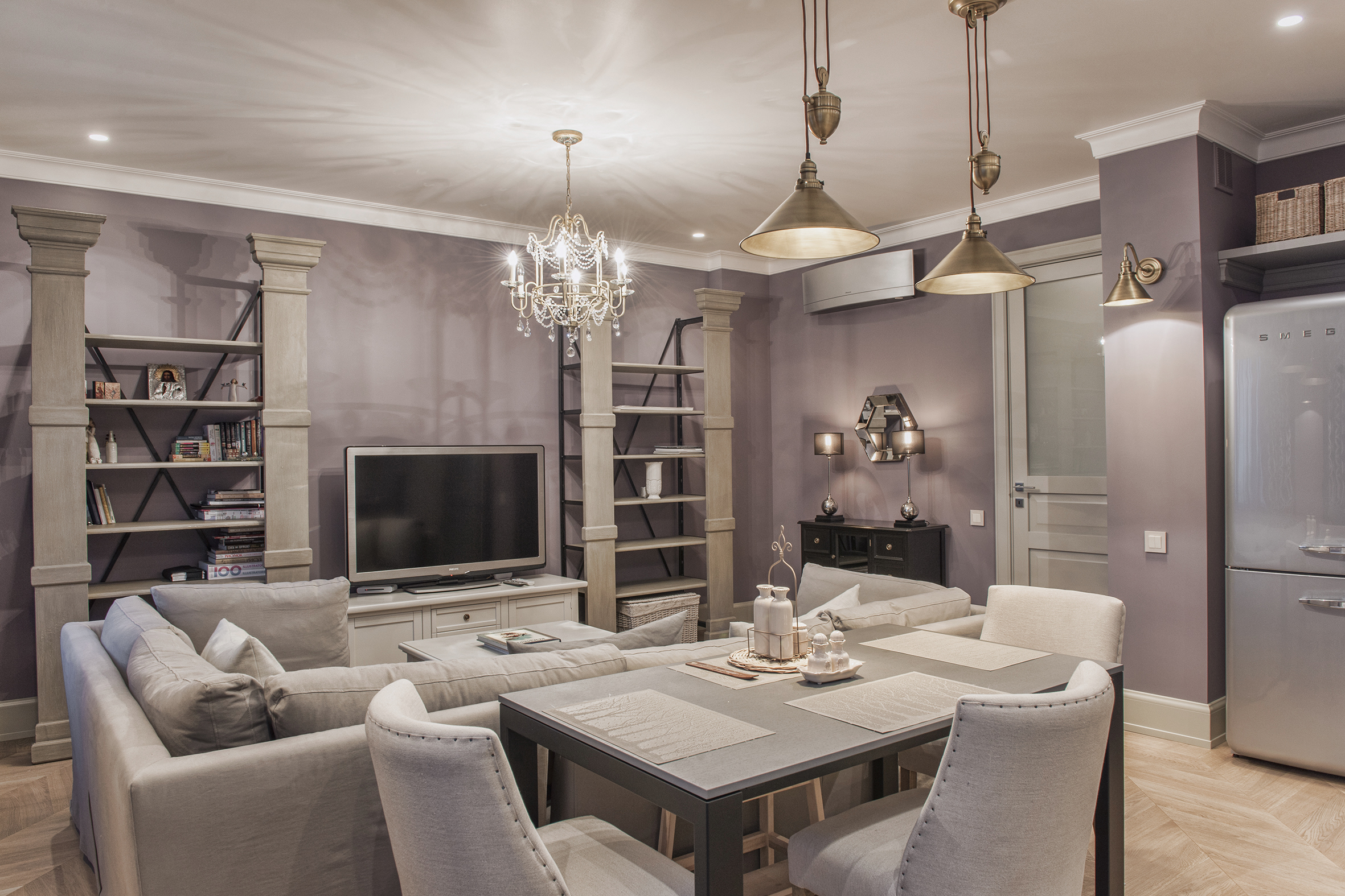 Дизайнер Ирина Налимова всегда находит неординарные решения, мастерски сочетая разные по стилистике предметы, и не боится экспериментировать с цветом. Как в этом обволакивающем монохромном и одновременно многоликом интерьере, раскрывающем всю глубину и богатство оттенков и полутонов благородного серого цвета. Акцентные шторы обрамляют пространство, как богатая рама – рисунок в пастельных тонах. Сочетание современной классики и элементов ар-деко в мебели и декоре создает объемный, многослойный, выразительный интерьер. А теплый оттенок натурального дубового паркета служит для него мягким естественным фоном.