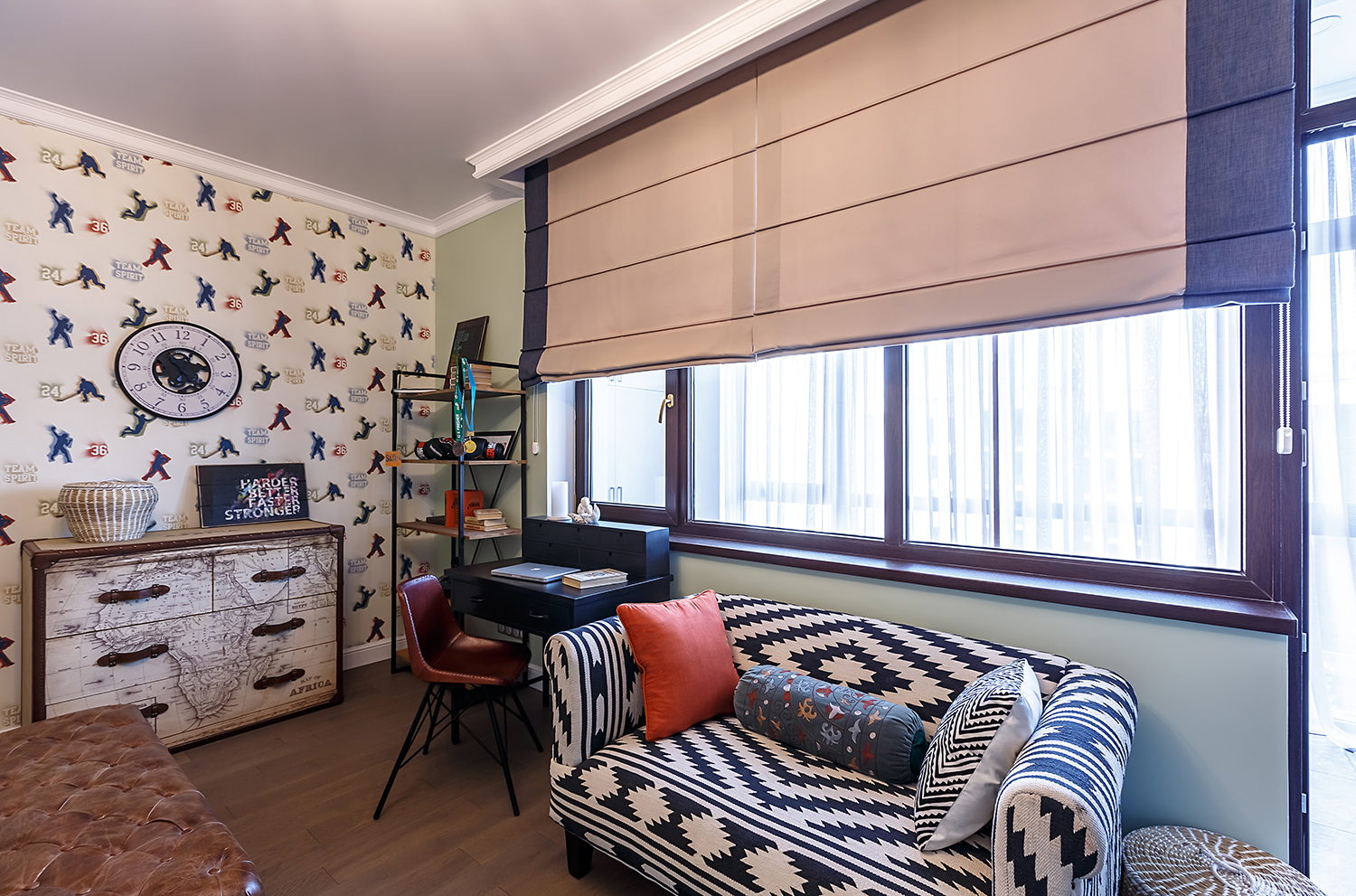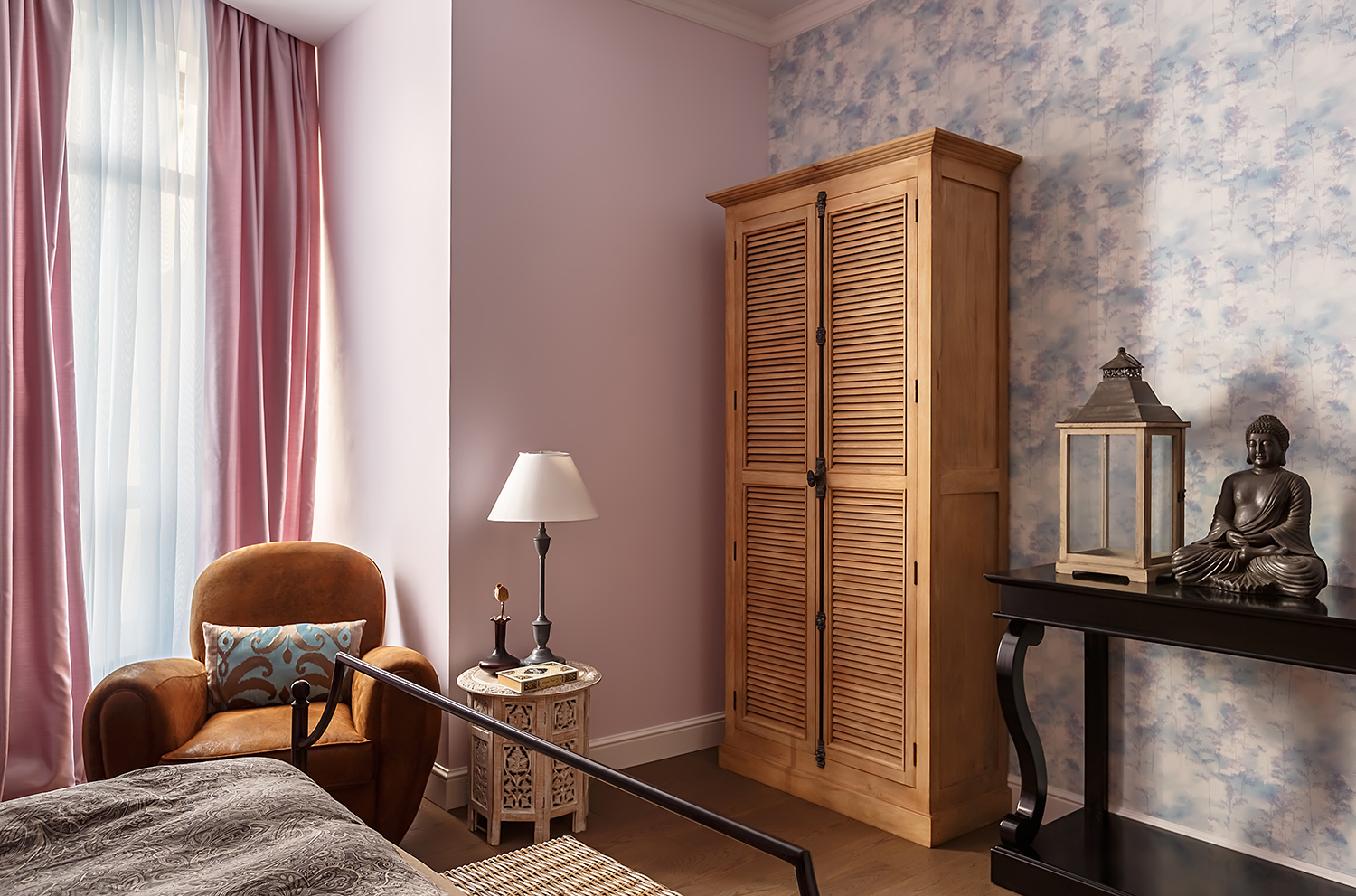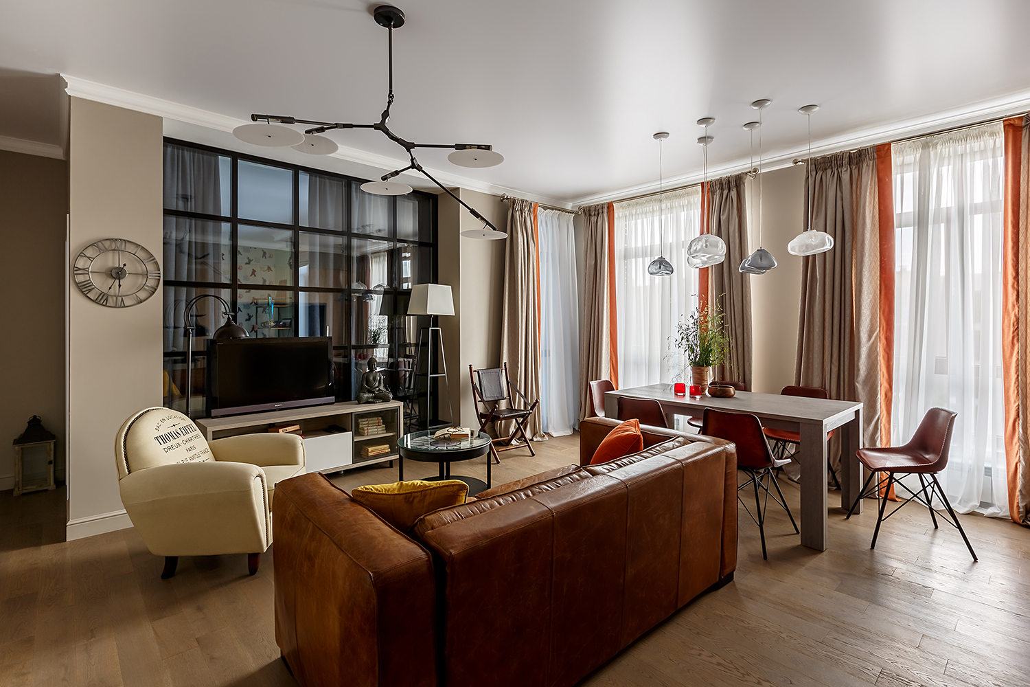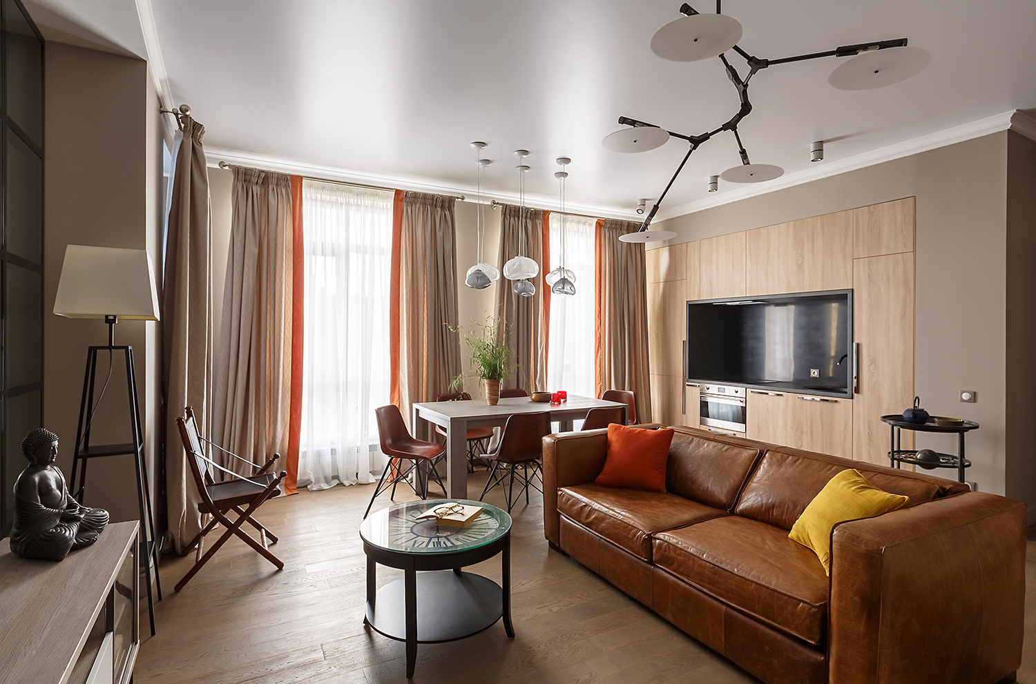 Удачное смешение стилей – это всегда интересно. Деревенский кантри с восточным колоритом, черты современного стиля с элементами индустриального лофта и вкраплениями ретро – все это дизайнер Гульбак Уразбаева подружила в одном пространстве апартаментов в городе Алматы (Казахстан). Интерьер получился современный, но «с историей», удобный для жизни и нескучный.