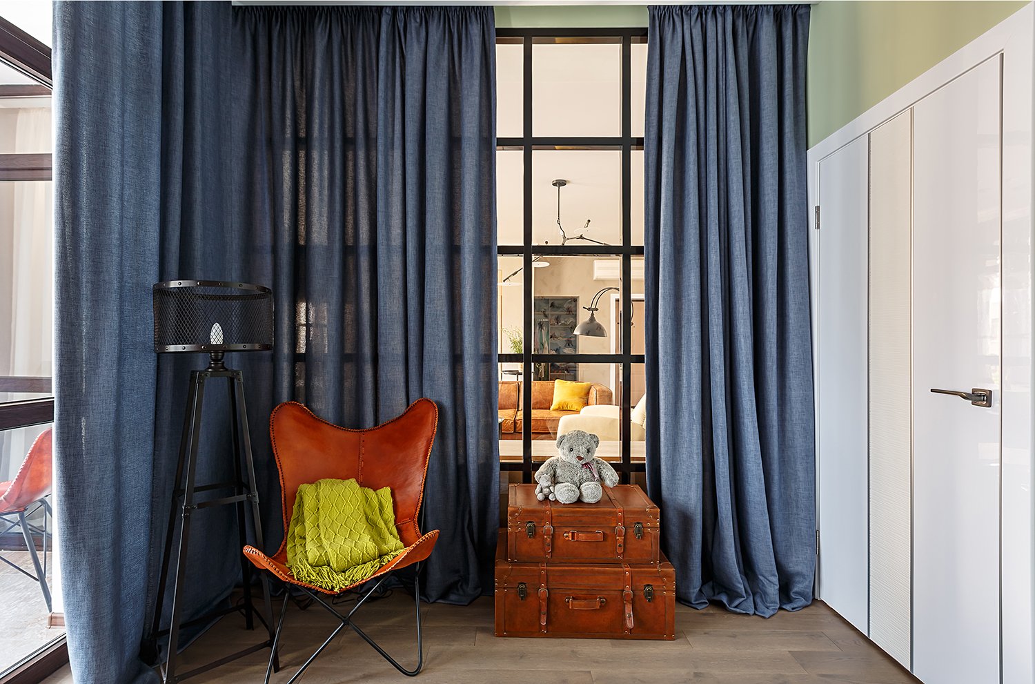 «Перчинку» всему интерьеру добавляет лофт-перегородка.