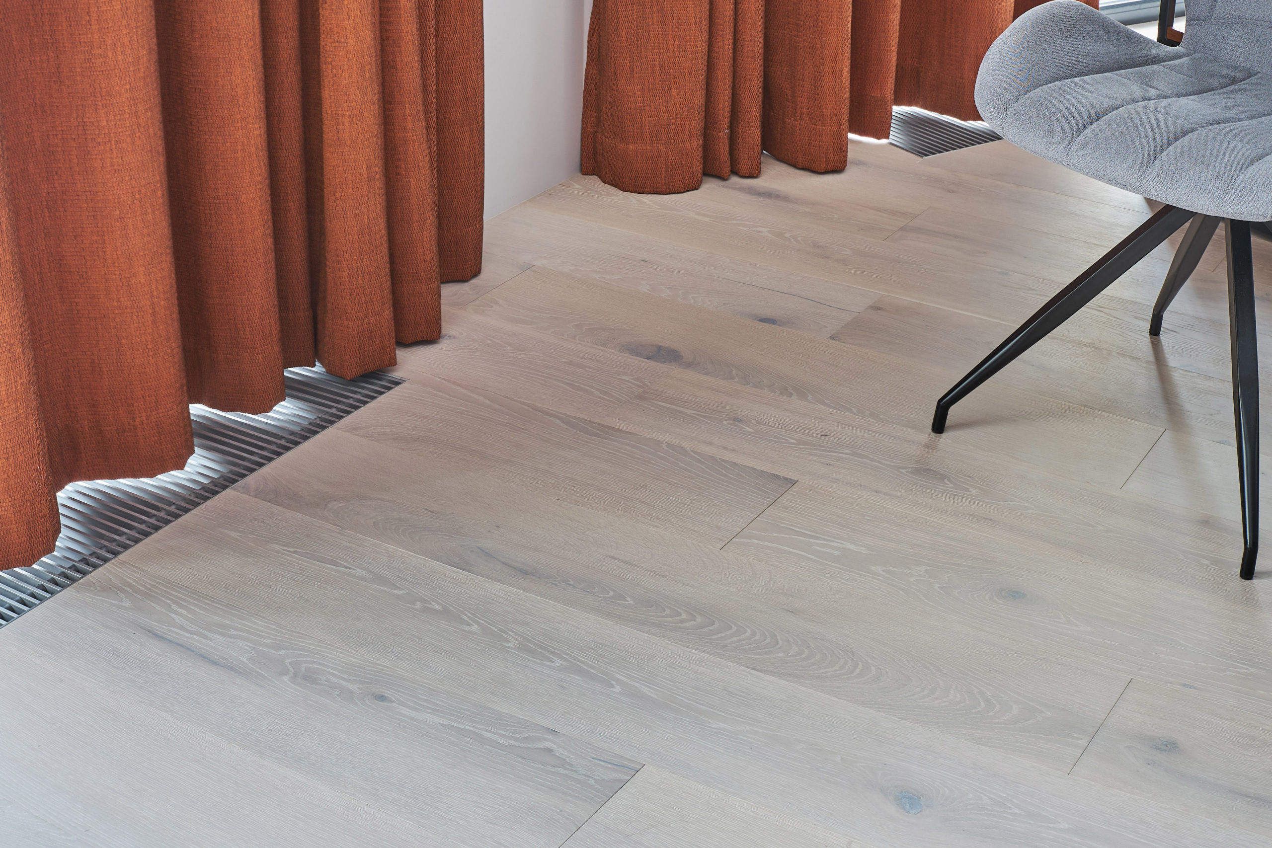 В проекте использована паркетная доска Coswick дуб Альпийский (Alpine), шелковое масло ультраматовое.