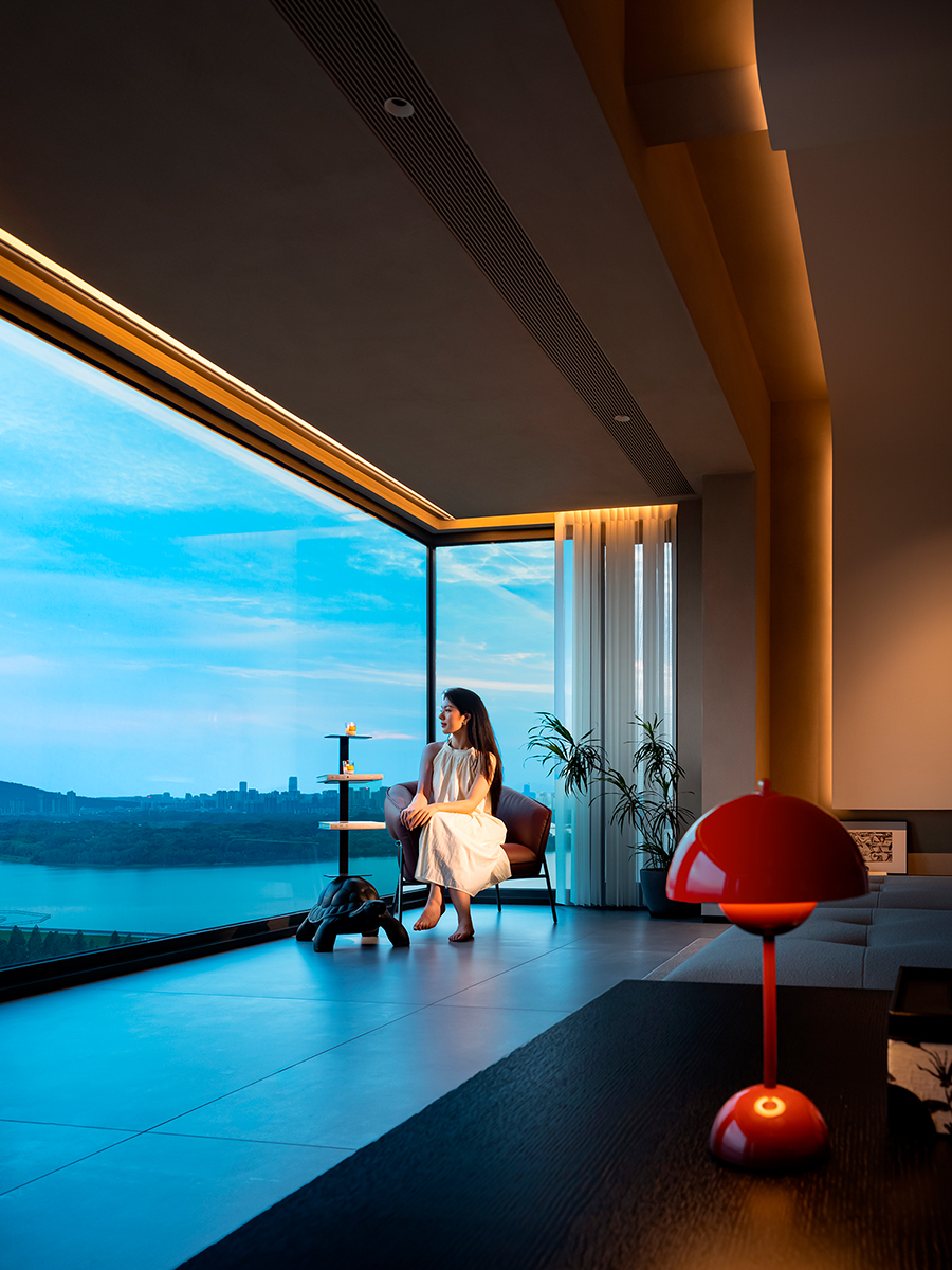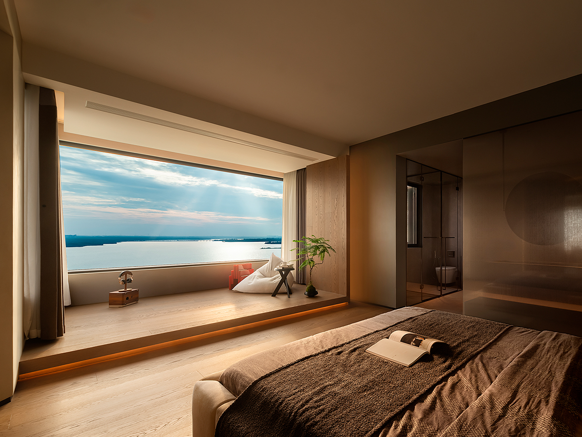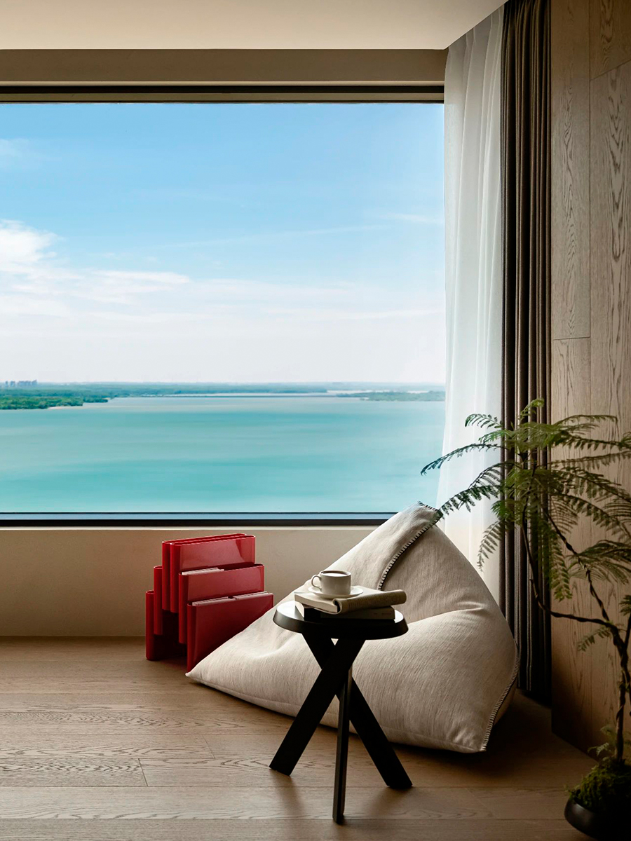 Особняк в китайском городском округе Хэфэй, окруженный живописными видами на горы и озеро, – замечательный пример создания пространства, в котором красота природного ландшафта становится главным украшением. На эту идею работает каждый элемент интерьера: умиротворяющая природная палитра, отсутствие ярких отвлекающих деталей, мягкий уютный текстиль и обилие в отделке натурального дерева с приятной шелковисто-дымчатой текстурой. Здесь царит атмосфера релакса и покоя, позволяющая в полной мере насладиться волшебными природными пейзажами, открывающимися из огромных панорамных окон.