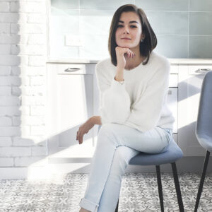 Для этого гостиную объединили с кухней, лоджию утеплили и присоединили к комнате, добавив ей объема и открыв красивый вид из окна. В итоге получилось интересное и очень удобное пространство с достаточным количеством естественного света.