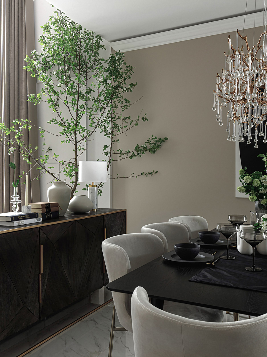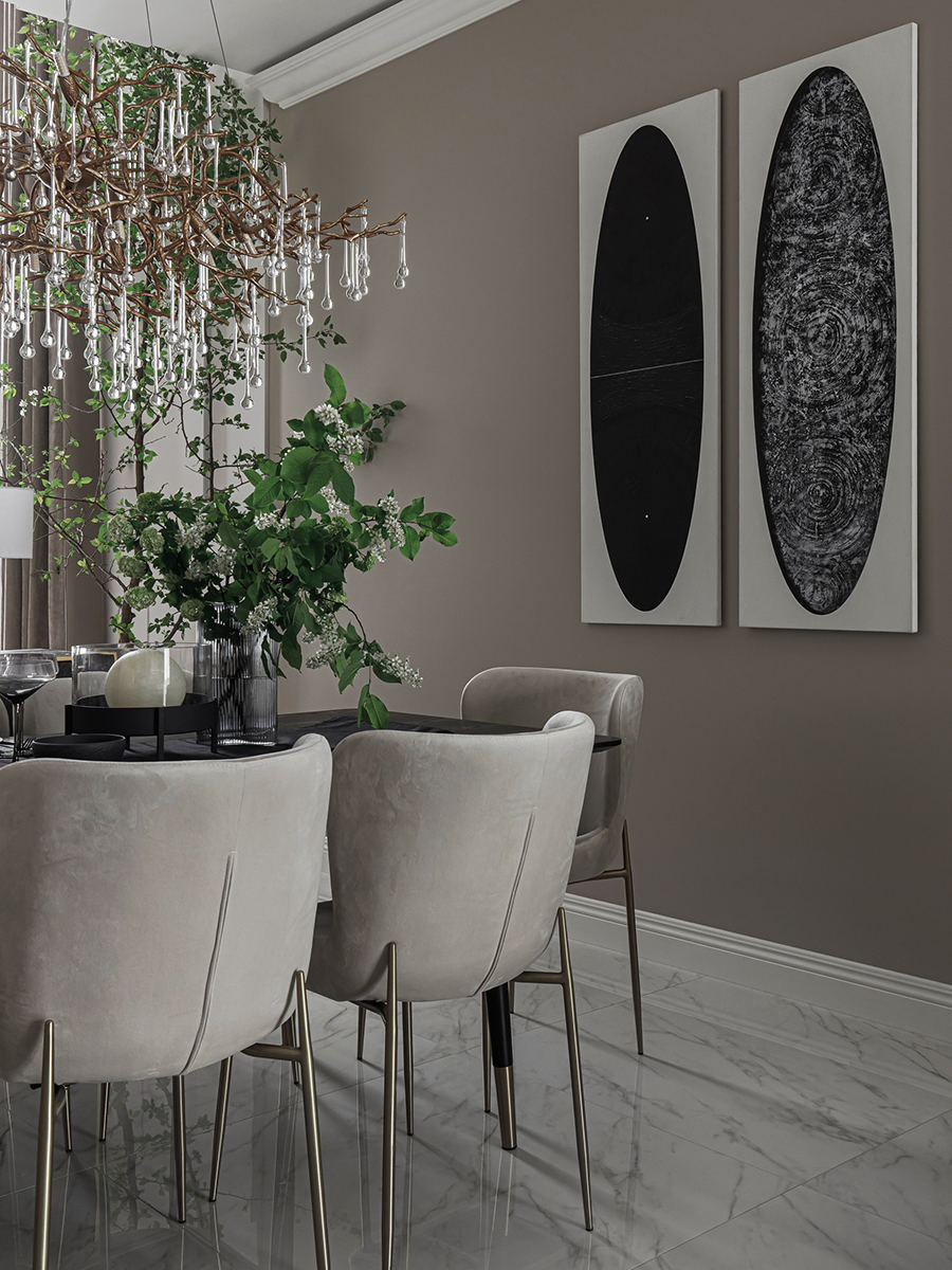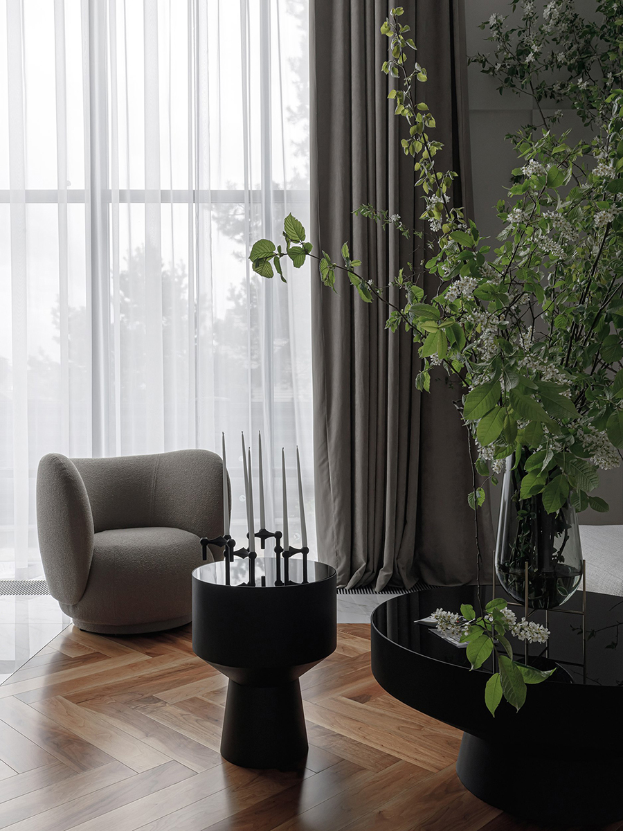Основная цветовая гамма в нем – оттенки бежевого. Получился теплый интерьер с классическими элементами и природой внутри.
