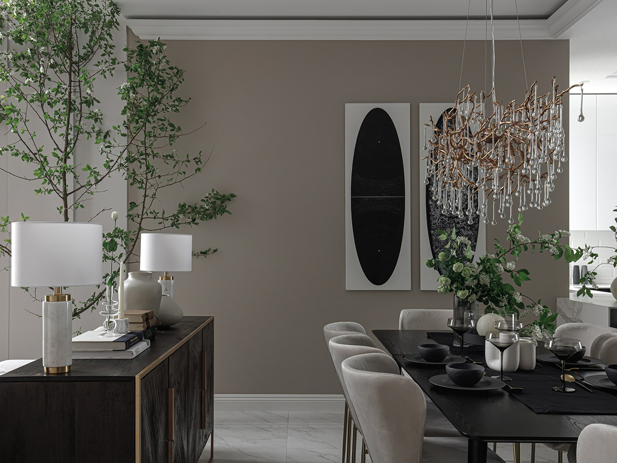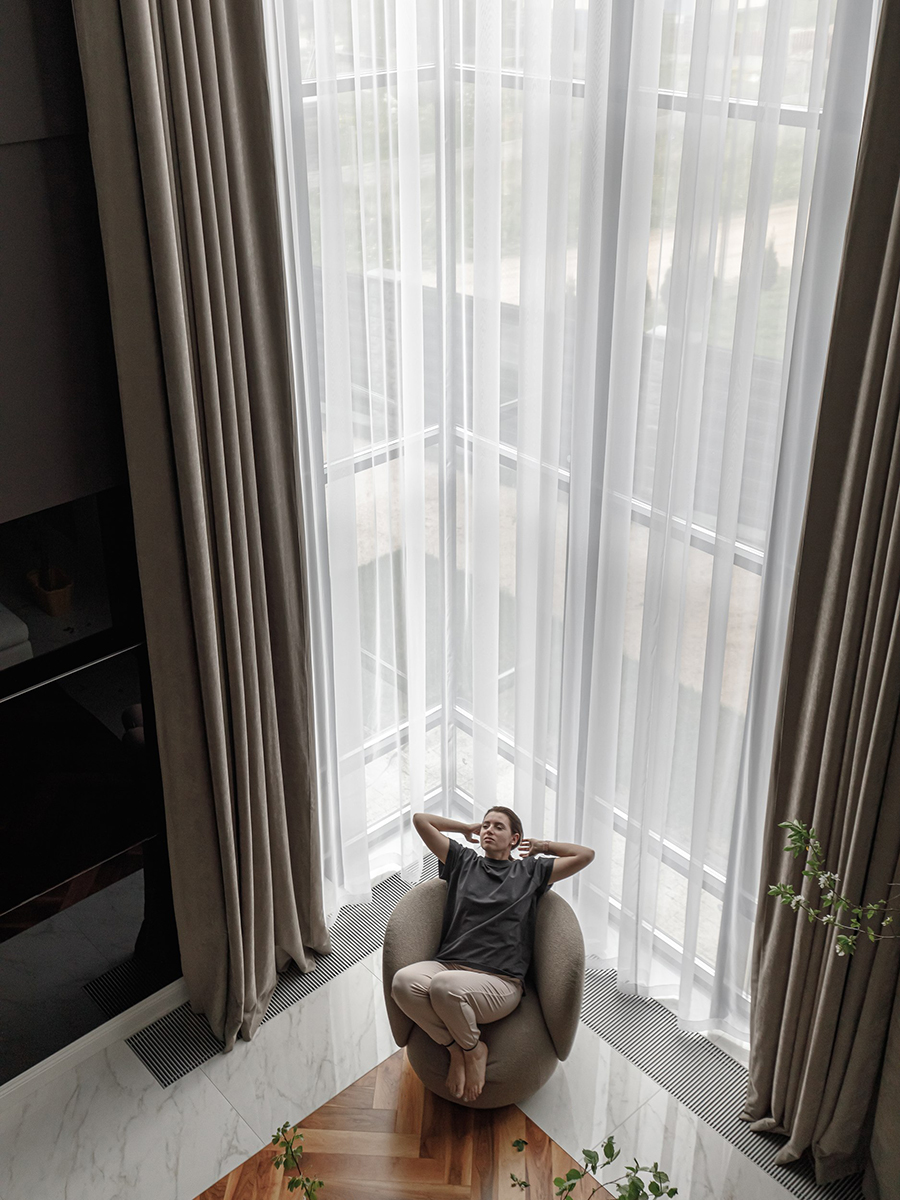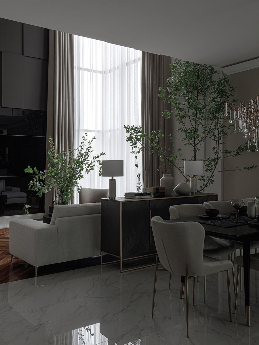 Основная цветовая гамма в нем – оттенки бежевого. Получился теплый интерьер с классическими элементами и природой внутри.