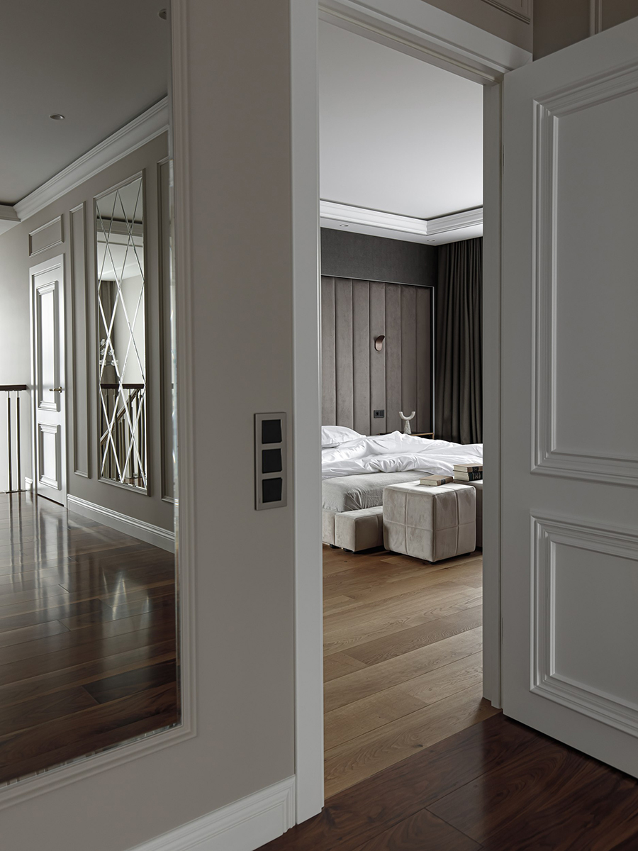 Этот интерьер создавался для молодой семьи с ребенком. Заказчики хотели видеть современную классику, но «носибельную». Когда мебель выглядит не как экспонаты из музея, а легко вживается в бешенный ритм жизни. Поэтому решено сделать дизайн в светлых оттенках.
