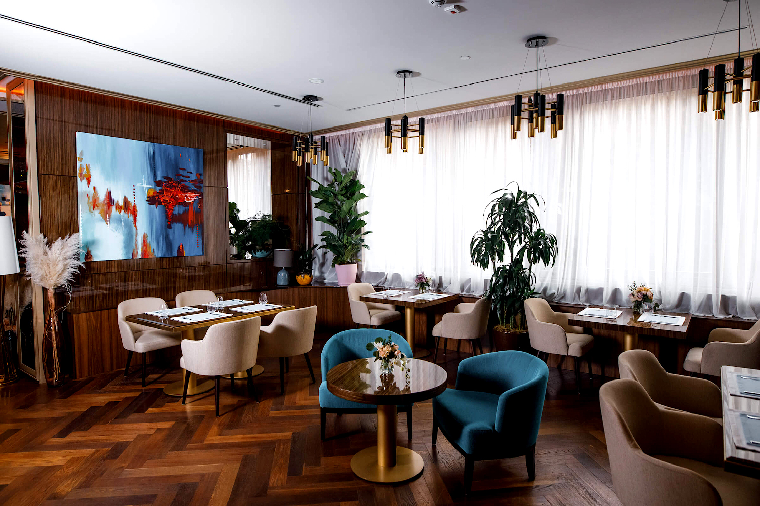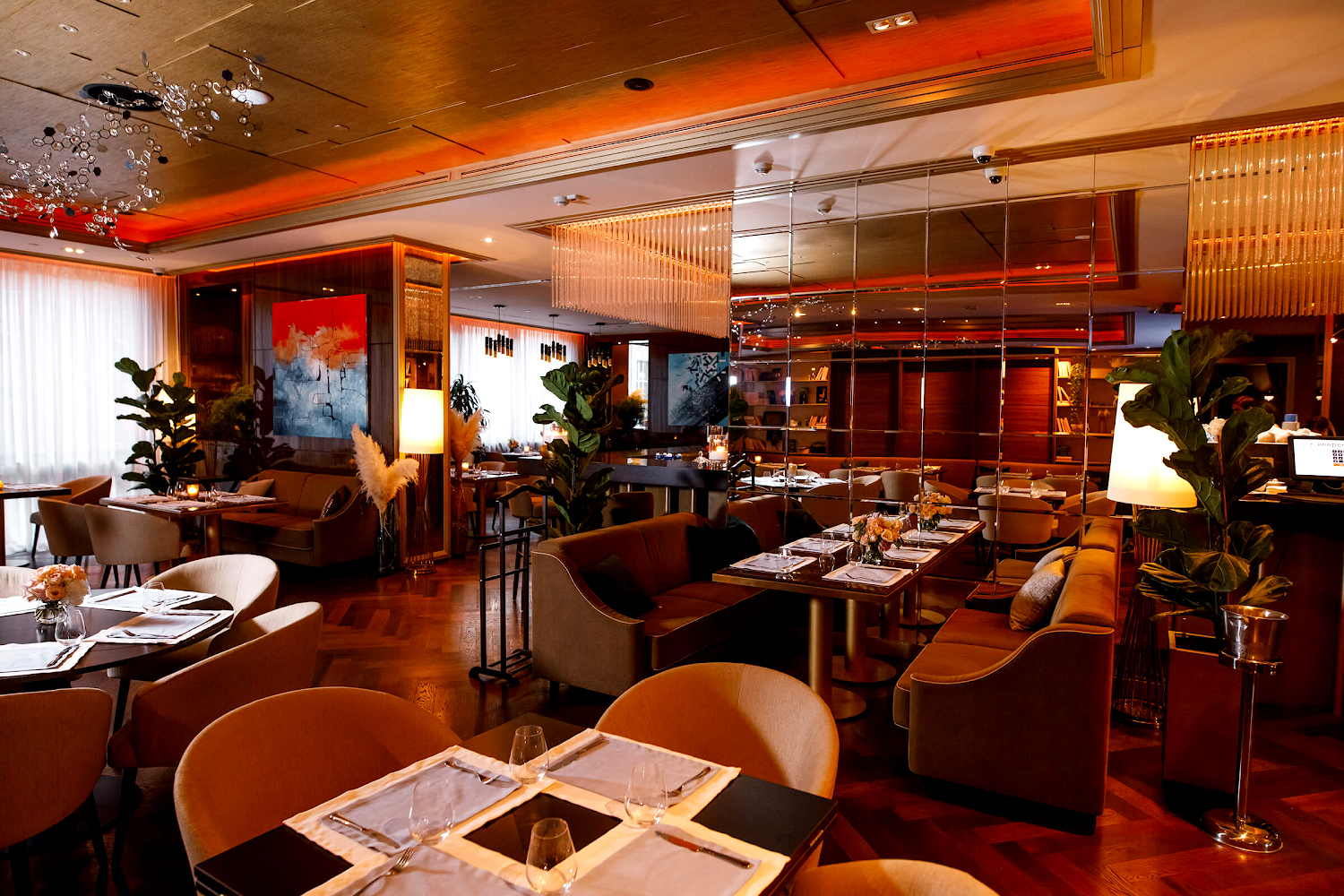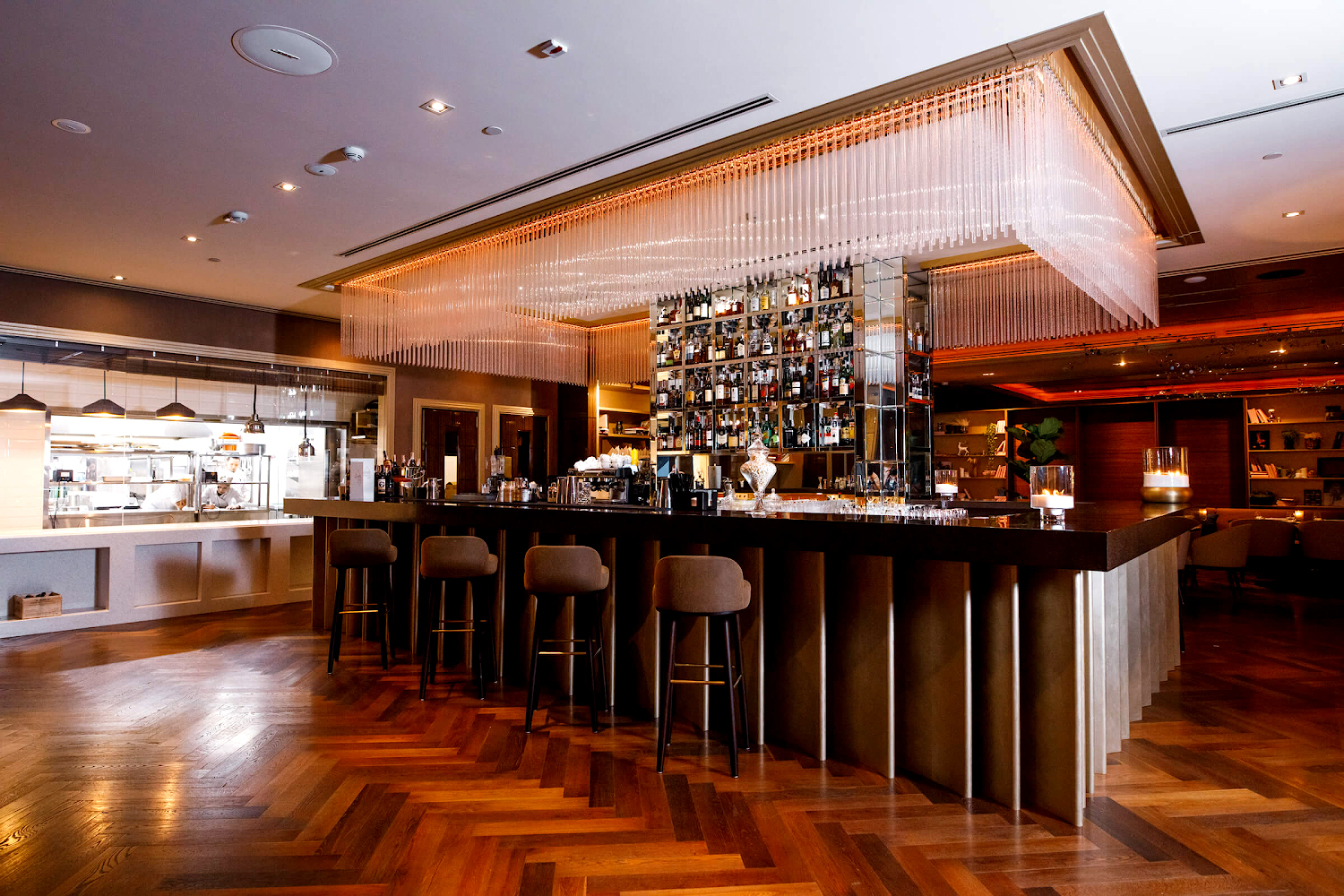 Интерьер этого респектабельного ресторана в Киеве (Украина) выполнен в духе американской классики и аккуратно дополнен современными деталями и элементами ар-деко. Классический паркет глубокого оттенка темного янтаря и обилие глянцевых деревянных поверхностей создают уютное и располагающее к отдыху пространство.