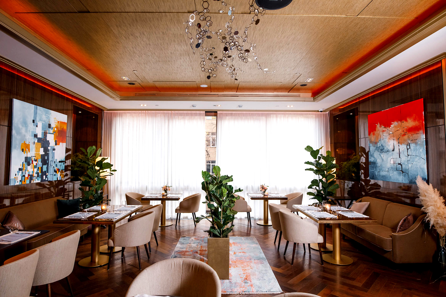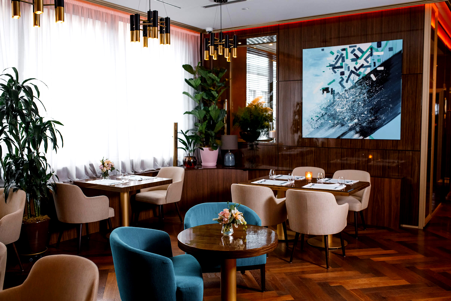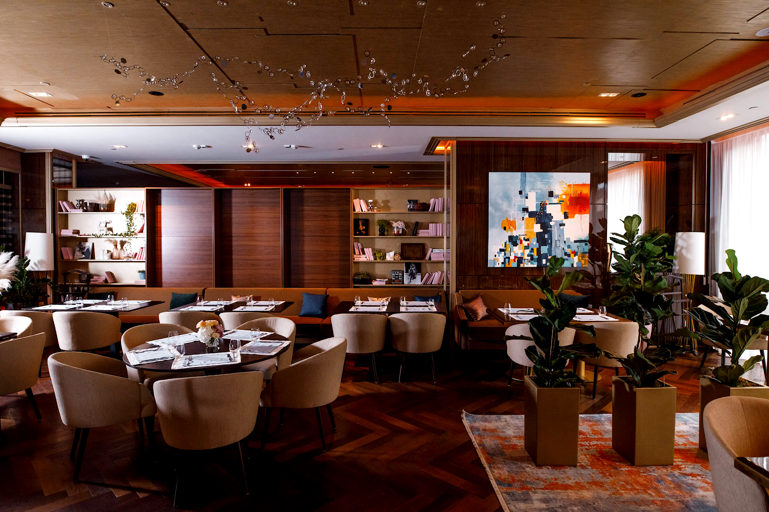 Интерьер этого респектабельного ресторана в Киеве (Украина) выполнен в духе американской классики и аккуратно дополнен современными деталями и элементами ар-деко. Классический паркет глубокого оттенка темного янтаря и обилие глянцевых деревянных поверхностей создают уютное и располагающее к отдыху пространство.