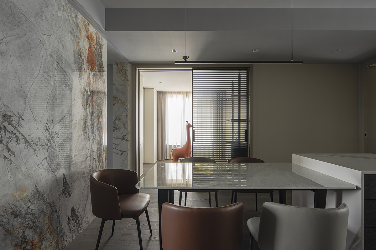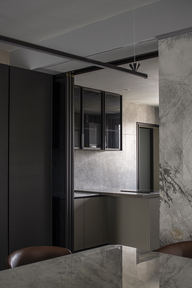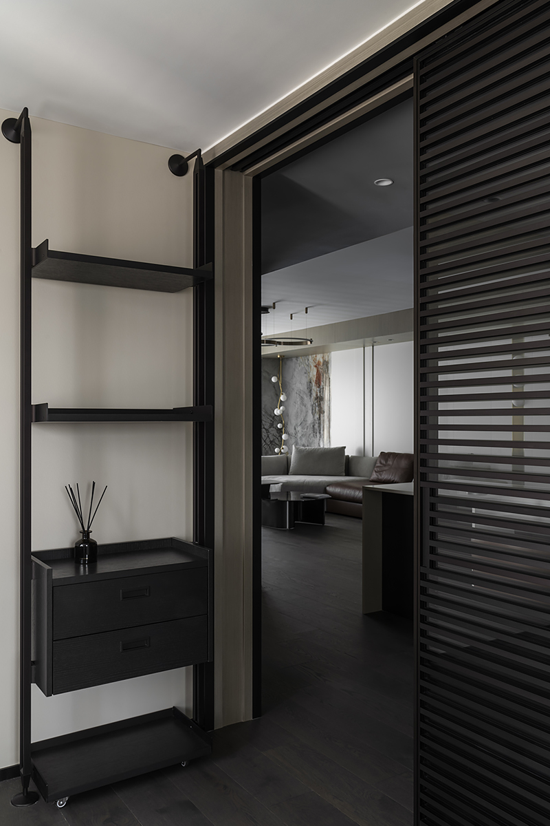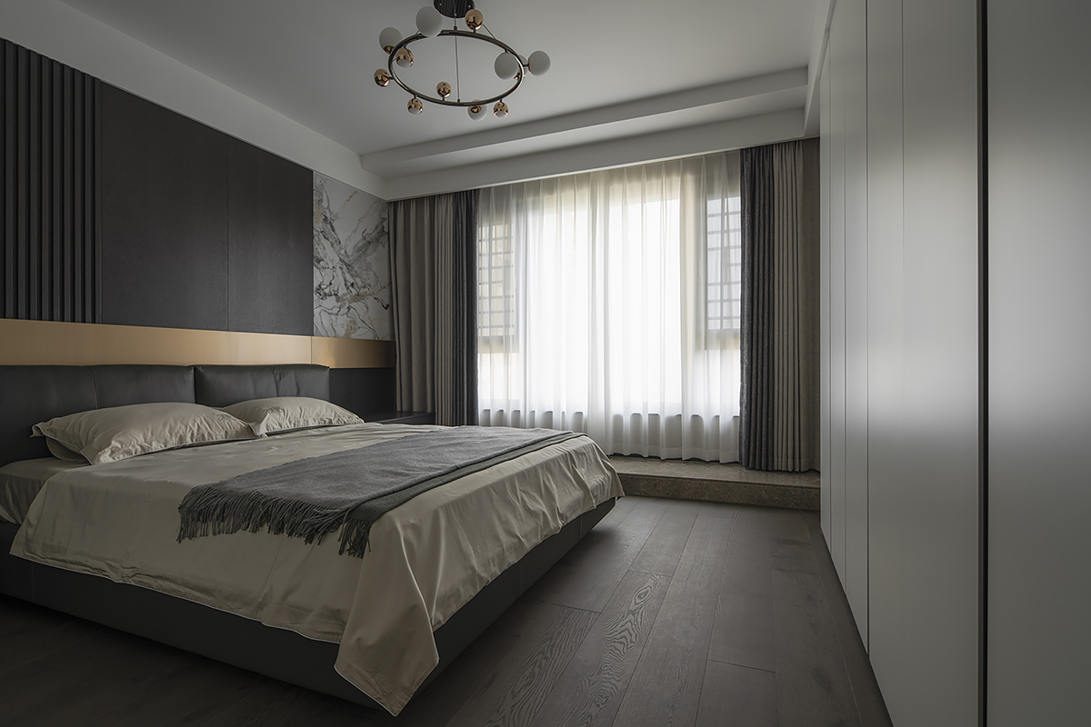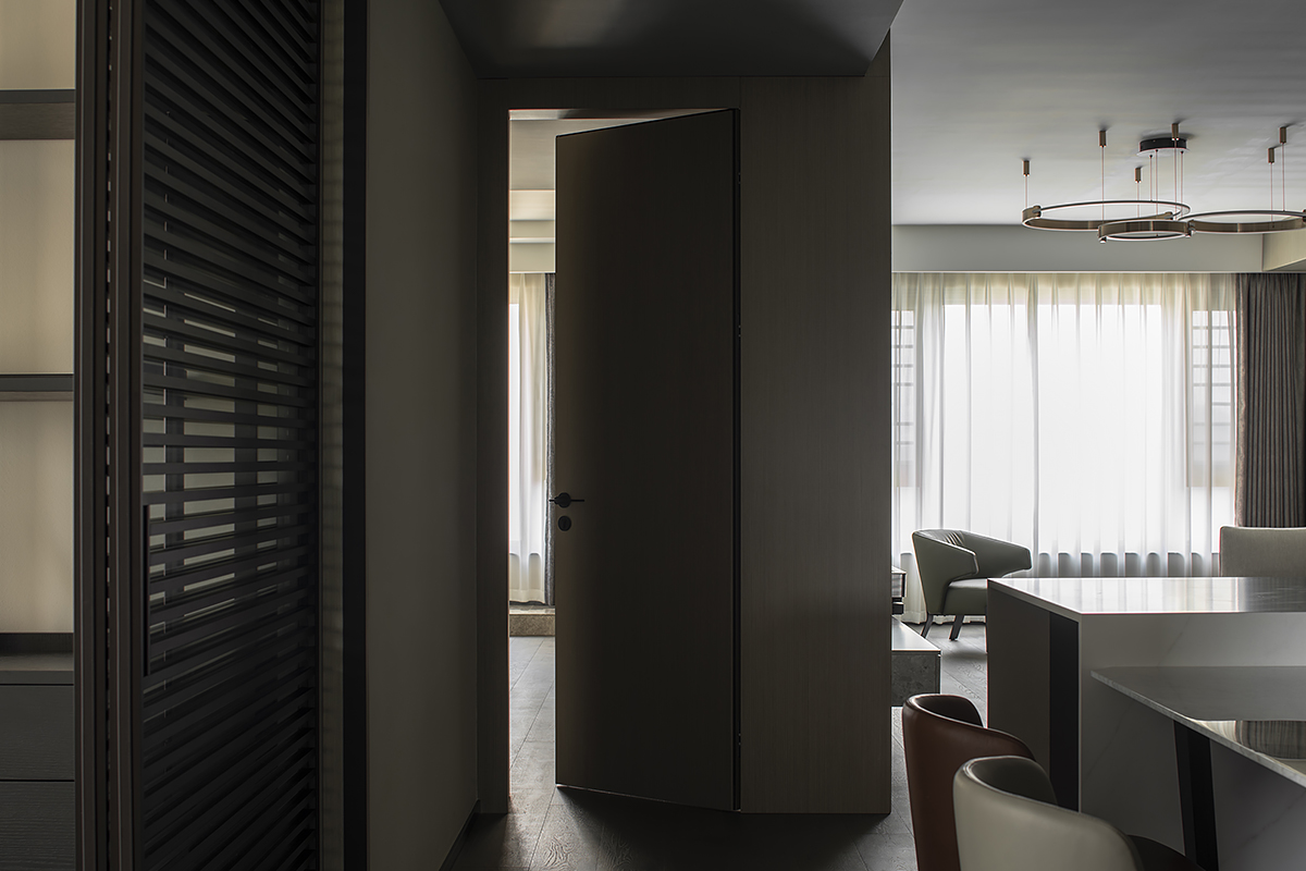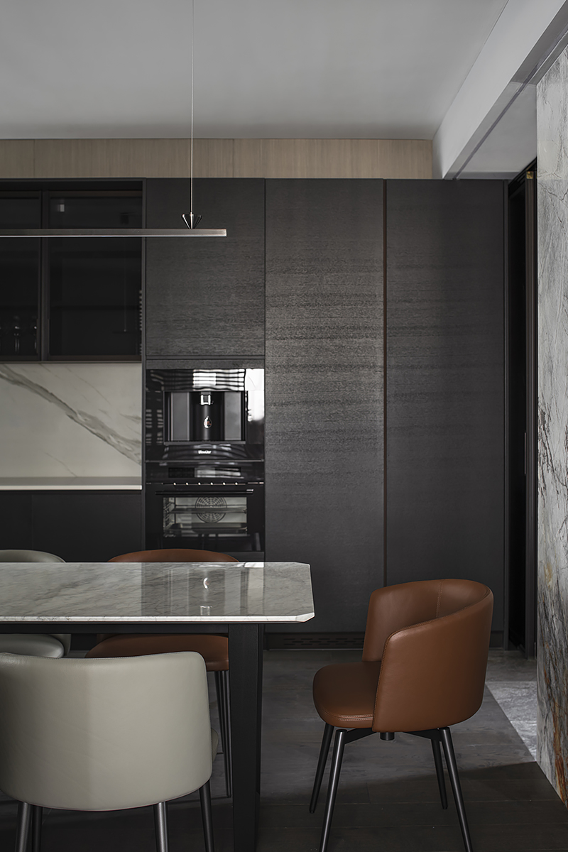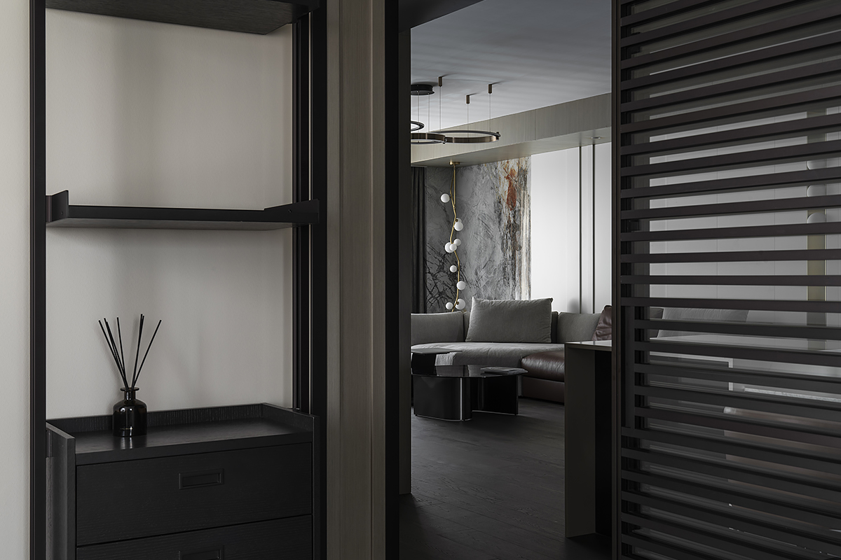 Квартира для пары с ребенком в современном жилом комплексе Moma в китайском городском округе Хэфэй. Дизайнерское решение построено на утонченной простоте: ясные линии, спокойная цветовая гамма с выверенными акцентами, придающими живость и лоск интерьеру, и разнообразие текстур – мягкая кожа, теплое дерево, «холодный» сланец и немного металла. В этом пространстве все подчинено идее комфорта и элегантной гармонии. Строгость бело-серо-черной палитры смягчают лаконичные золотые акценты. Сочетание металлических деталей с элементами из натурального дерева сглаживает жесткость интерьера, добавляя теплоты и уюта. Глубокий оттенок паркетного пола Coswick в тандеме с темными стеновыми панелями создает ощущение защищенности и надежности.