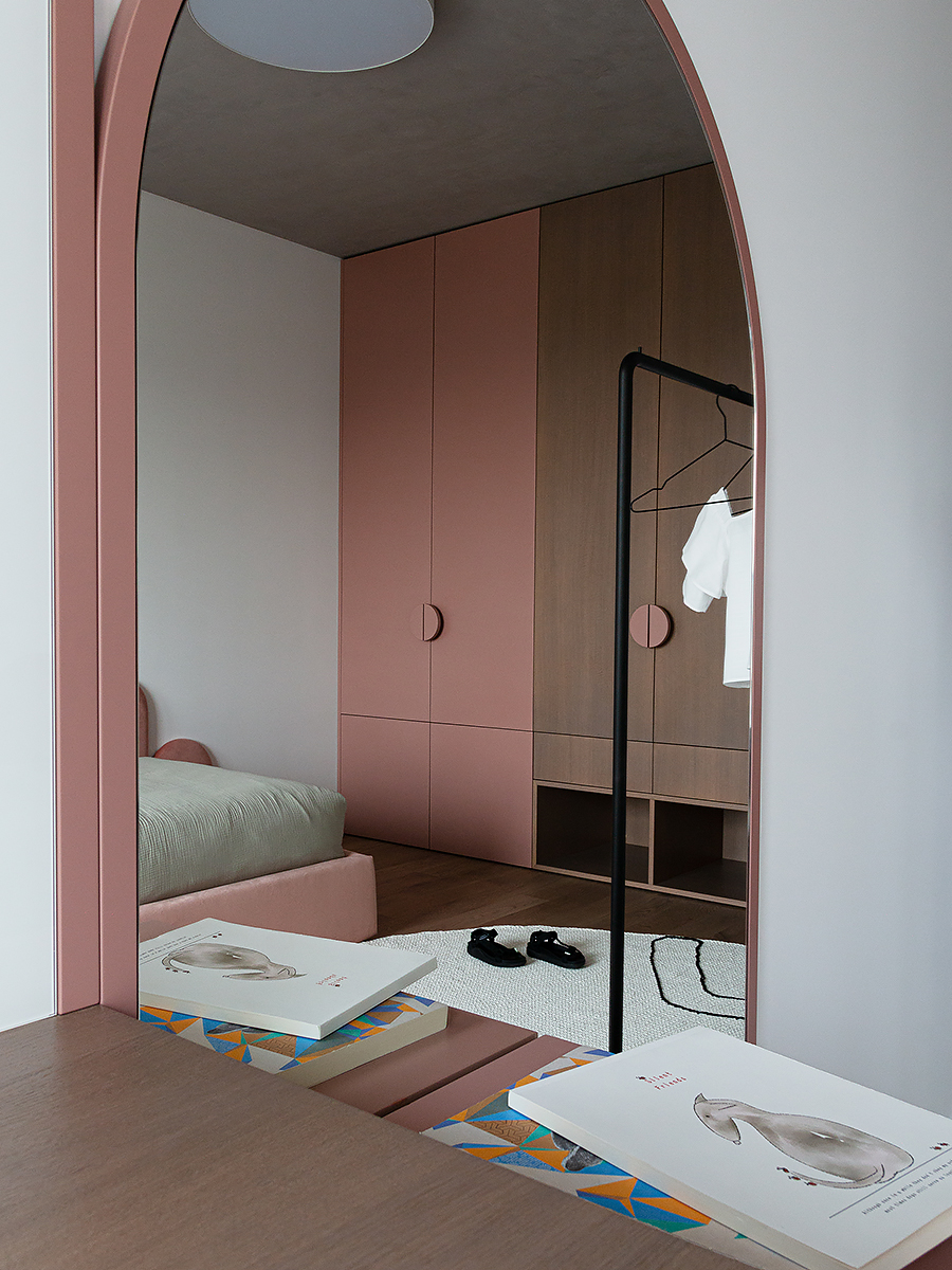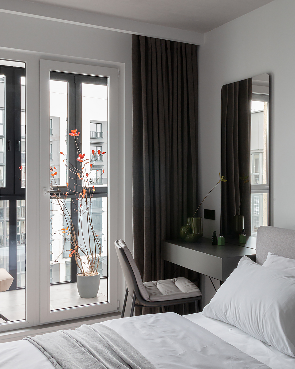Семья любит проводить время вместе, поэтому кухню объединили с гостиной, сделав ее настоящим сердцем дома. В спальне благодаря реорганизации пространства удалось разместить вместительную гардеробную, а в ванной – полноценный постирочный блок.