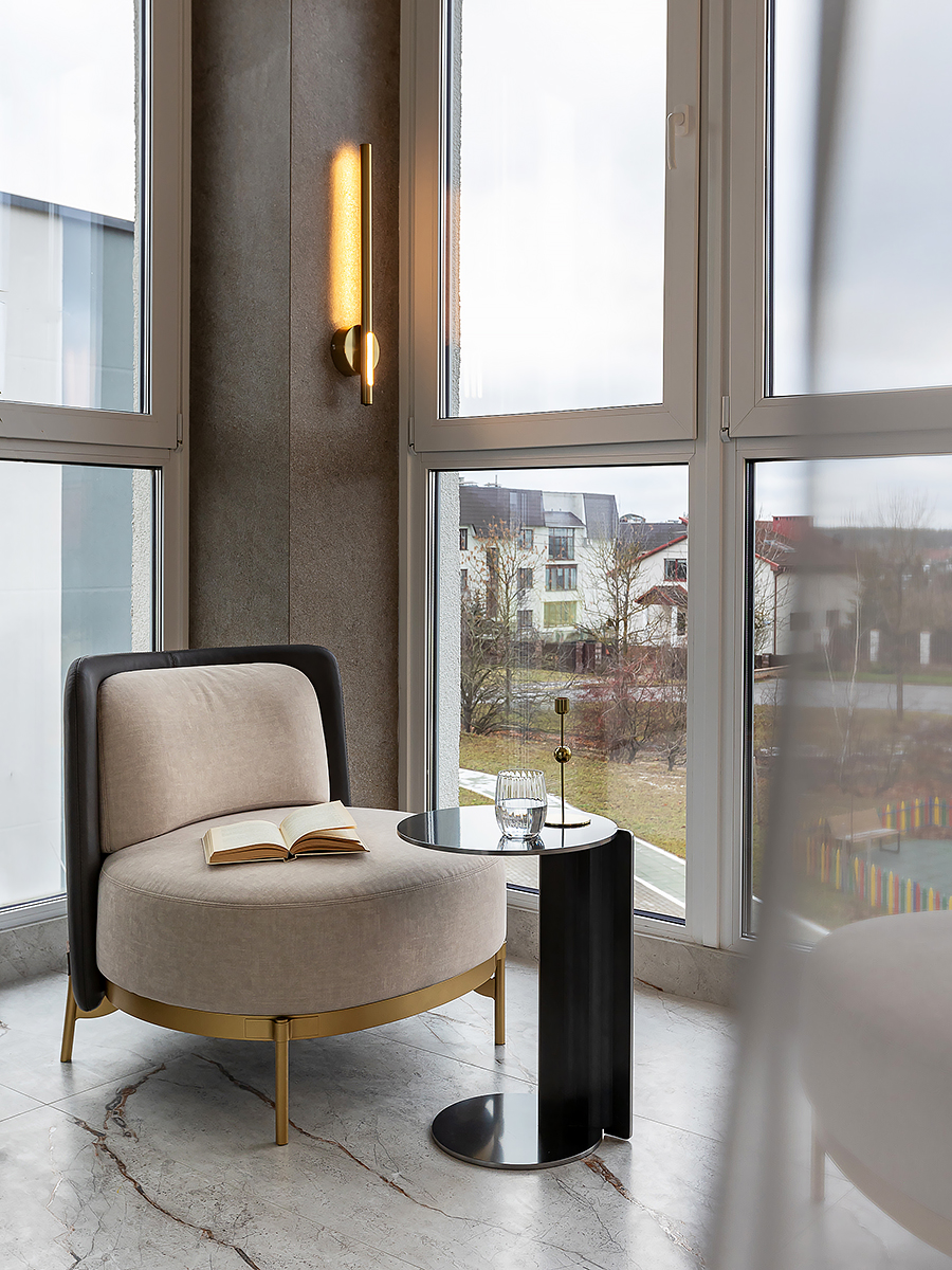 Данный проект — воплощение гармонии между классической эстетикой и природным естеством. Молодая семейная пара, заказчики интерьера, стремилась создать спокойное и утонченное пространство в единстве с природой, так, их дом стал настоящим продолжением живописного пейзажа за окном.