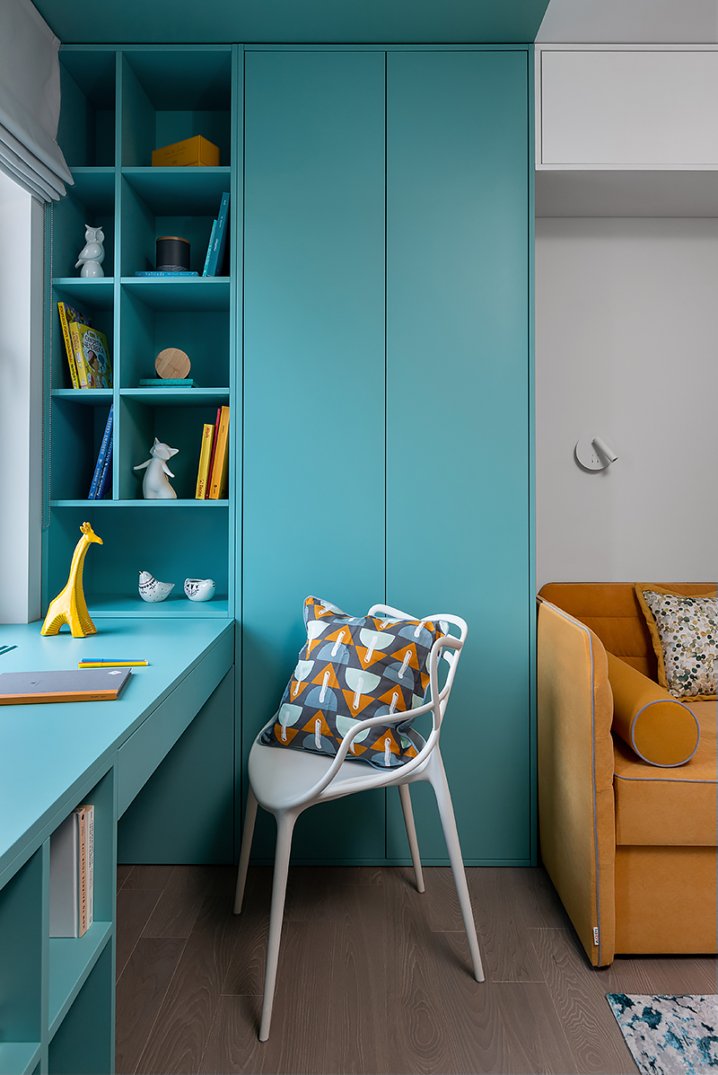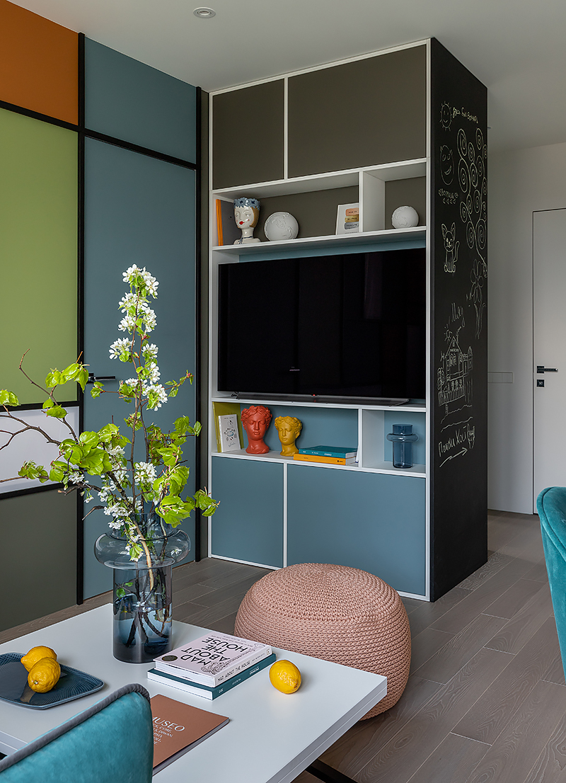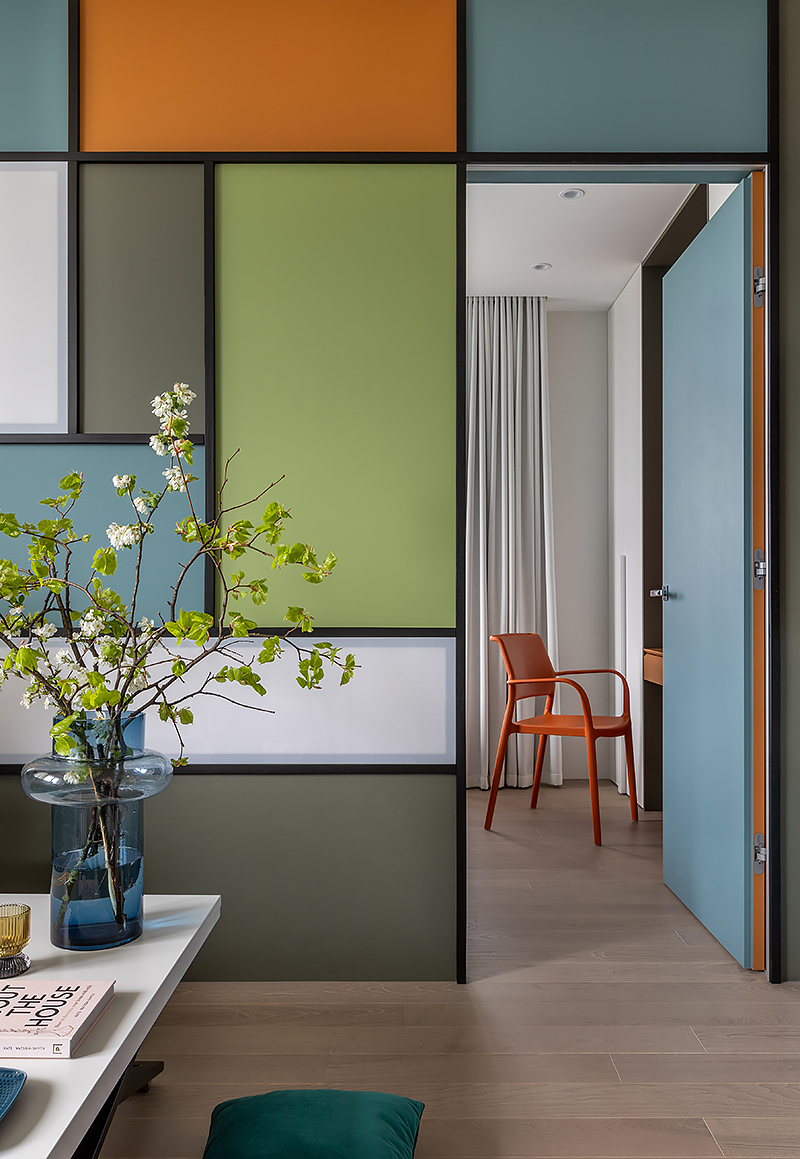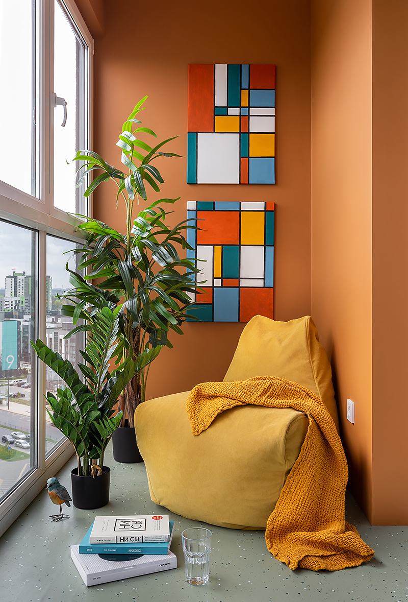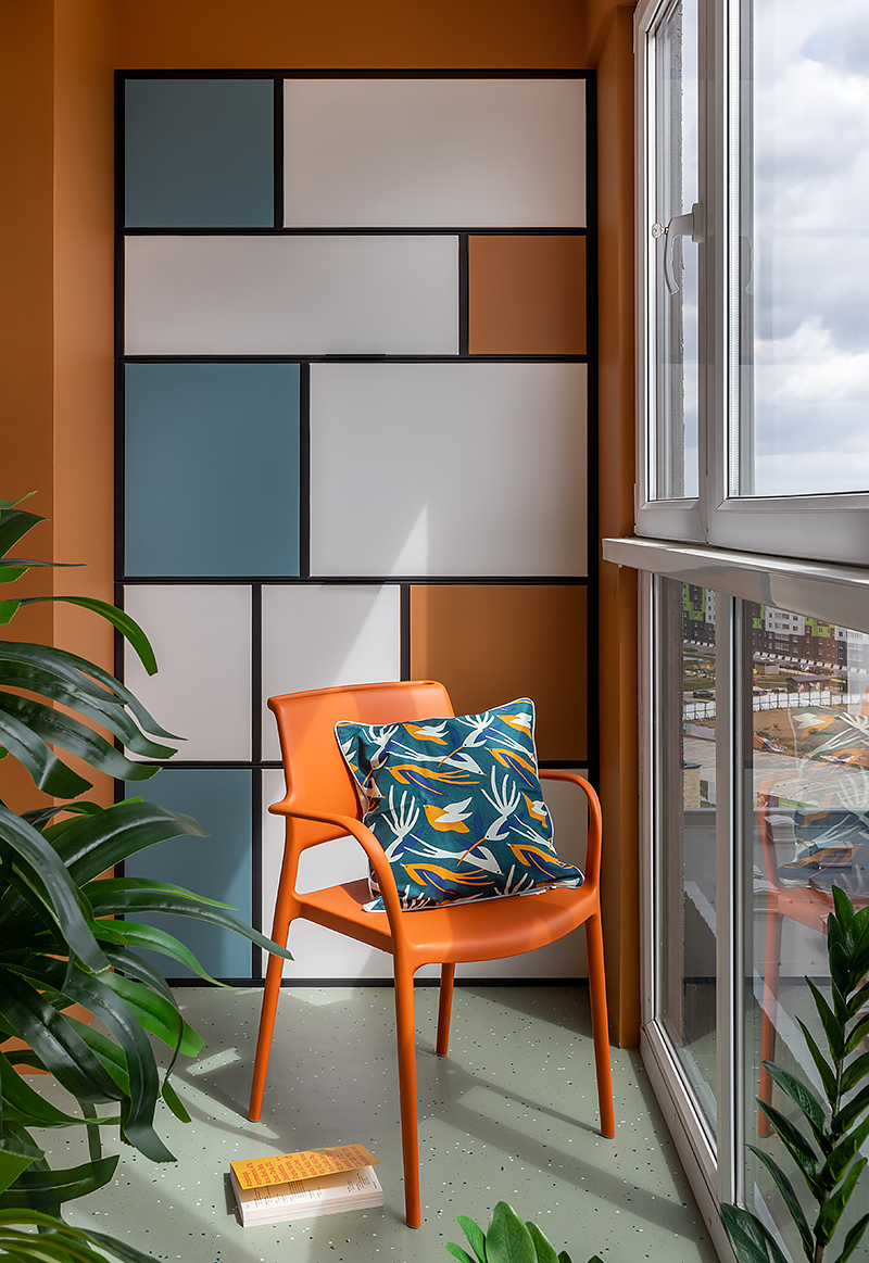 Создавая проект данной квартиры, дизайнер Ксения Мицкевич вдохновлялась работами Пита Мондриана, его неповторимым сочетанием графики и сочных цветов. Стояла задача создать интерьер для жизни с изюминкой и особым шармом, что отразилось в планировочном решении, работе с пространством, выборе цветовых сочетаний. Дизайнеру Ксении Мицкевич удалось создать законченный интерьер, не прибегая к тотальному декорированию. Убрать «лишний шум», создать пространство, где можно с комфортом отдохнуть и почерпнуть вдохновения!