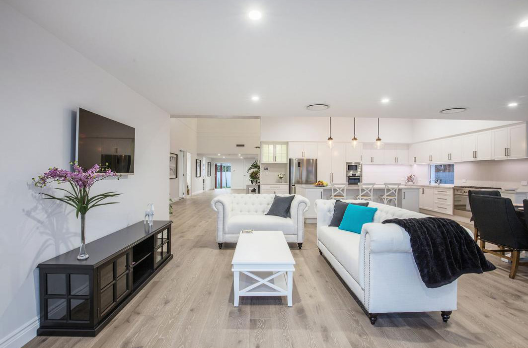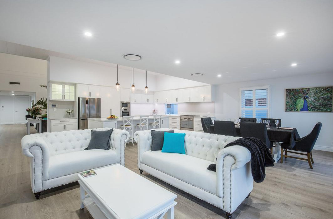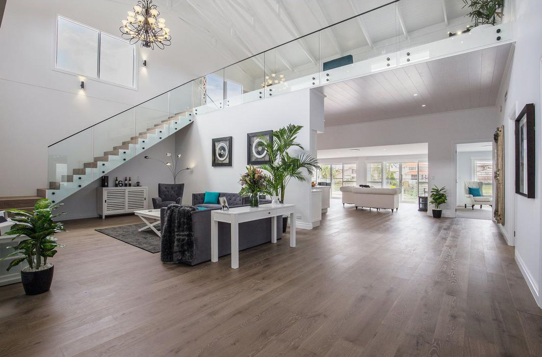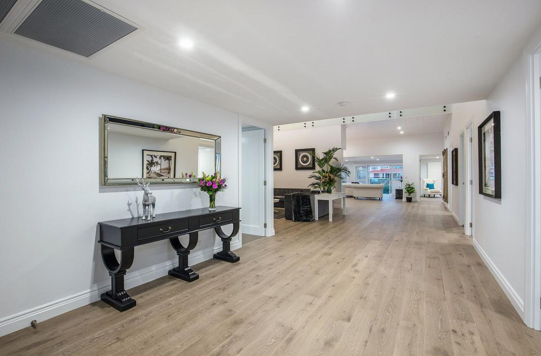 Эта частная вилла на известнейшем курорте Австралии Gold Coast – один из самых значимых проектов, реализованных совместно с нашим австралийским партнером Zealsea Timber Flooring. Можно сказать, что первую скрипку в этом проекте сыграл именно паркет: заказчик так тщательно не выбирал ни один другой материал, а дизайнер выбранный цвет паркета положил в основу всего интерьера.