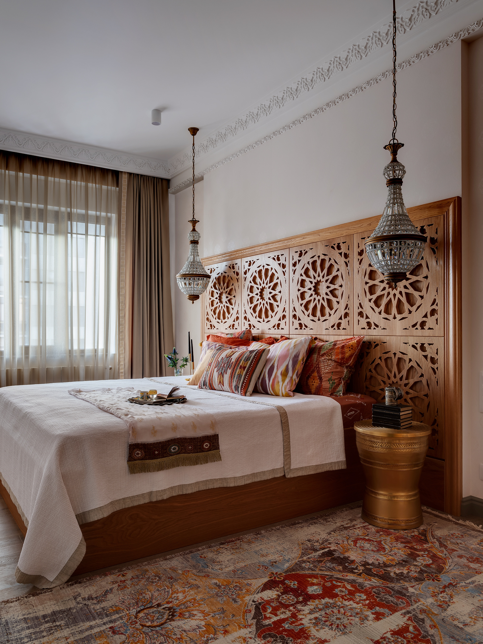 Владелица этой квартиры в Махачкале искренне любит свой народ и традиции и хотела создать современный интерьер, который был бы наполнен отсылками к наследию родной культуры. Дизайнер Аида Рагимханова, вдохновившись этой идеей, создала настоящую восточную сказку. Всем членам семьи нравятся резные и массивные элементы декора и атмосферный дизайн.