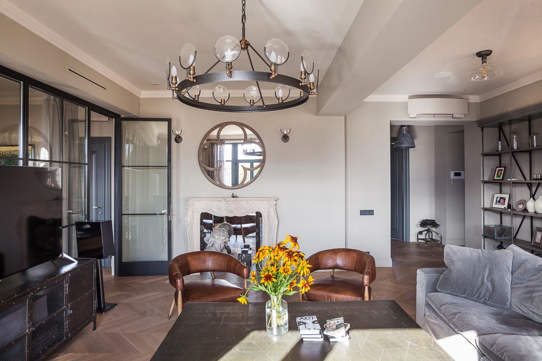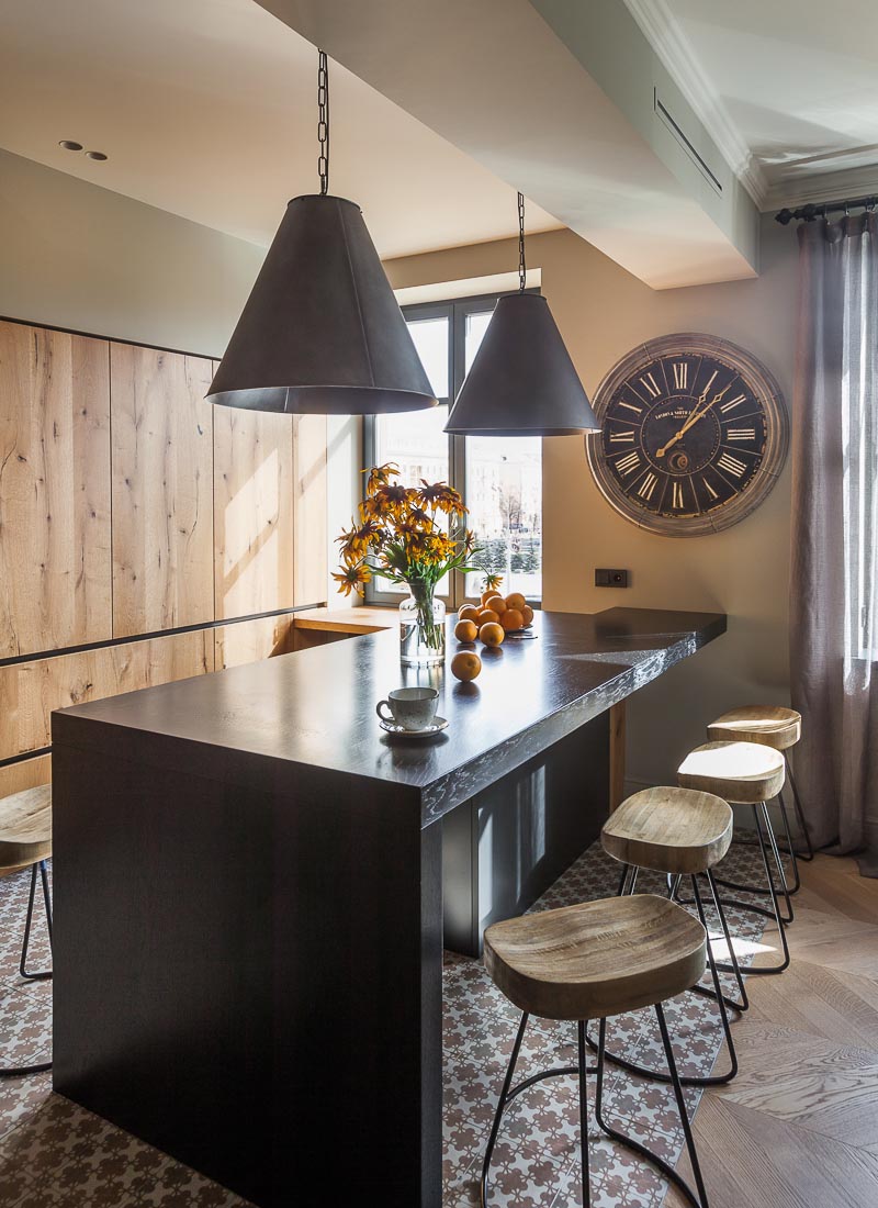 Вместе с заказчиками было принято решение не нарушать изначальную планировку, только несколько перенаправить движение и жизнь в квартире, чтобы подстроить пространство под задачи, поставленные перед нами. Черпая вдохновение в классических интерьерах Голландии и Бельгии, мы постарались перенести эту атмосферу в квартиру в Минске. В итоге получилось удобное и продуманное пространство для жизни семьи из пяти человек.