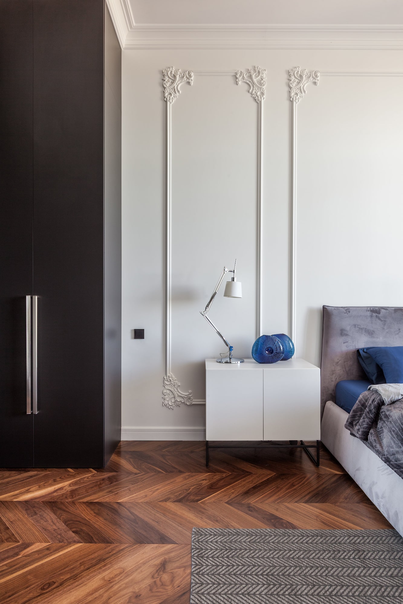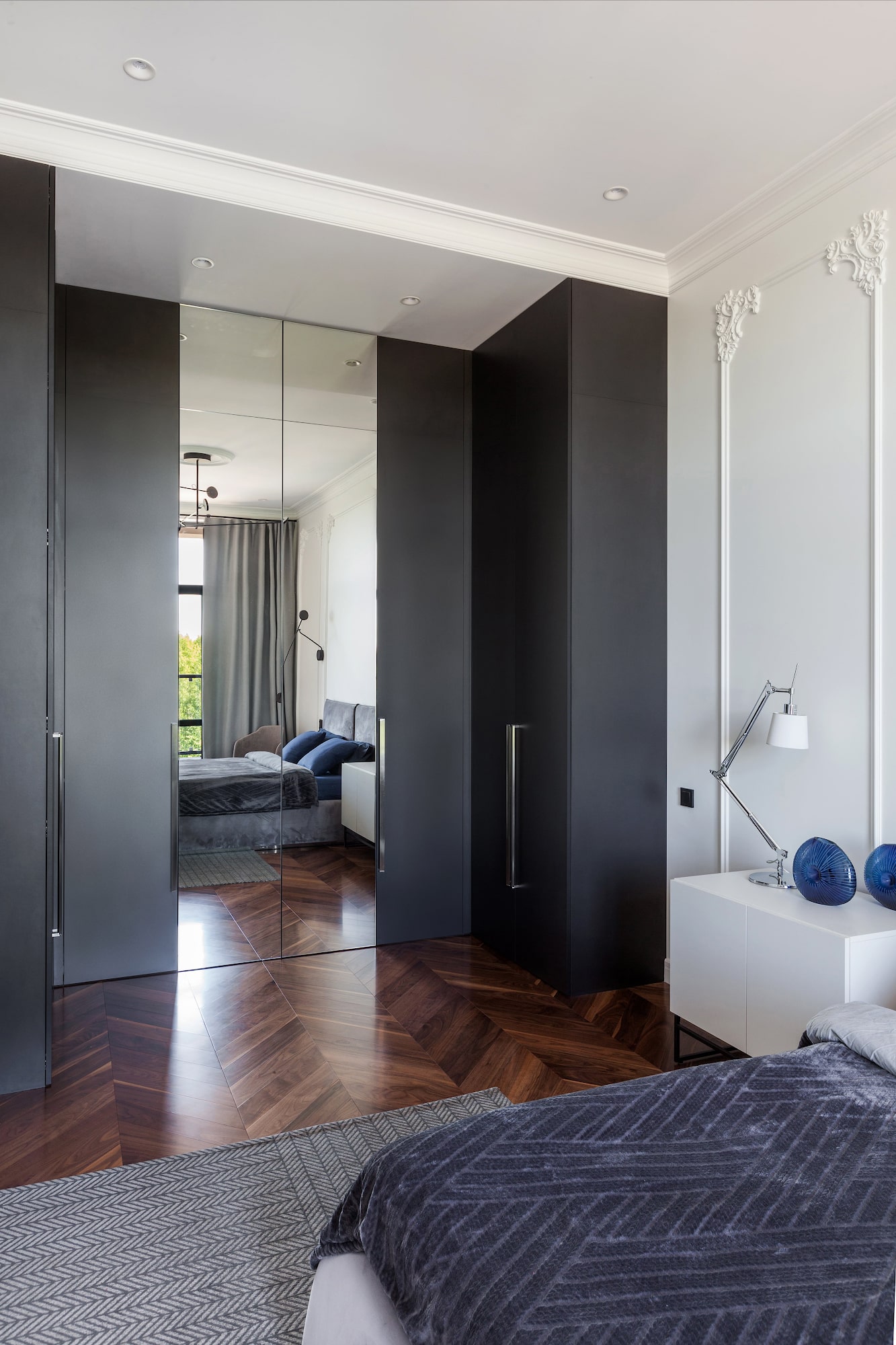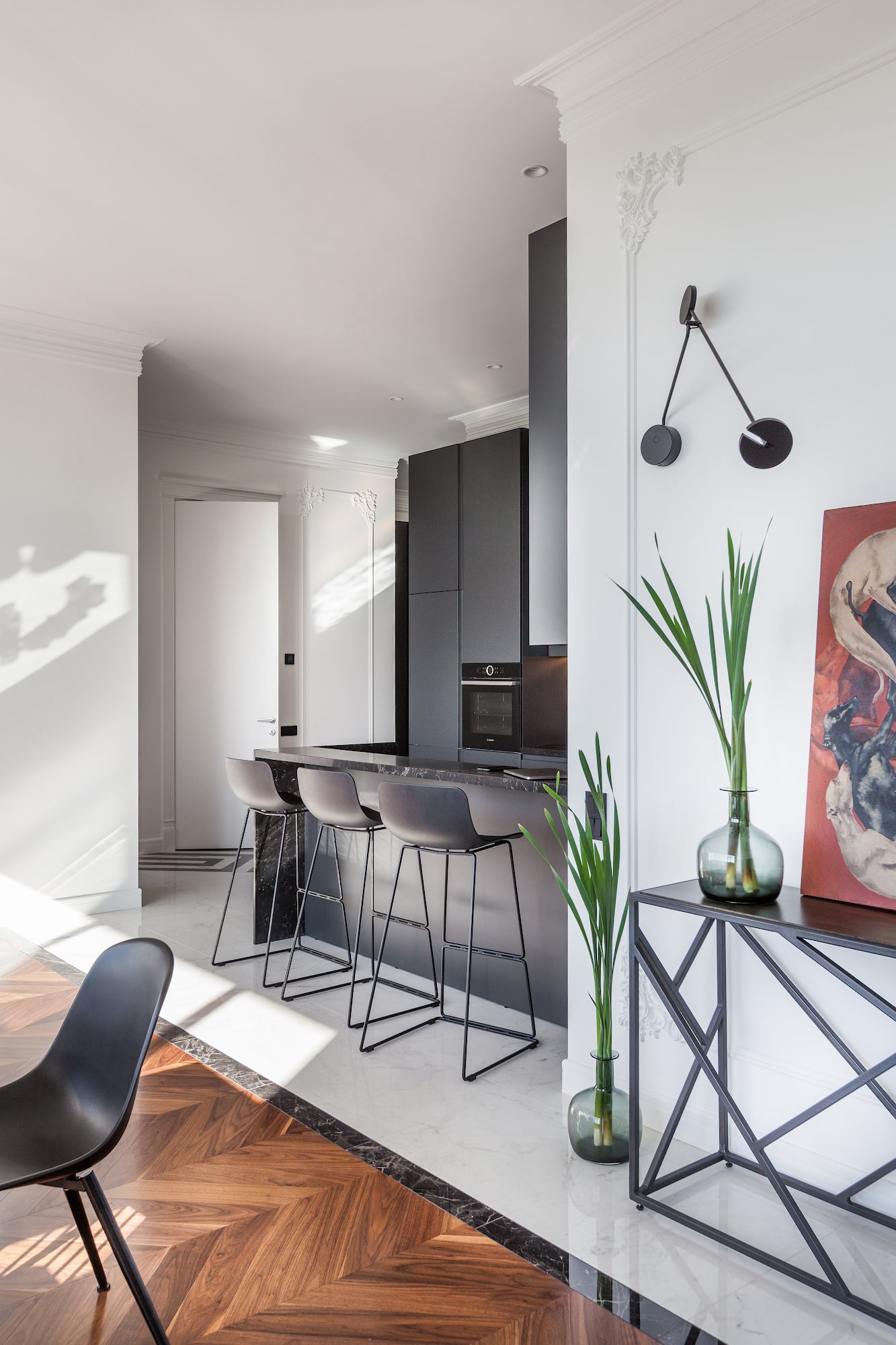 Свободная трактовка классики, небольшие эксперименты и попытка создать интерьер для конкретного человека — это и есть отличительные особенности проекта. Заказчик доверял нам многое и очень старался не вмешиваться, отчего проект был достаточно быстро разработан и реализован.
