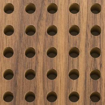 Применяя отделку из натурального шпона ценных пород древесины, панели Coswick Acoustic позволяют выполнять декоративную отделку помещений на высочайшем эстетическом уровне. Стандартная программа включает 80 вариантов декора, так же возможно исполнение дизайна по индивидуальному запросу.
