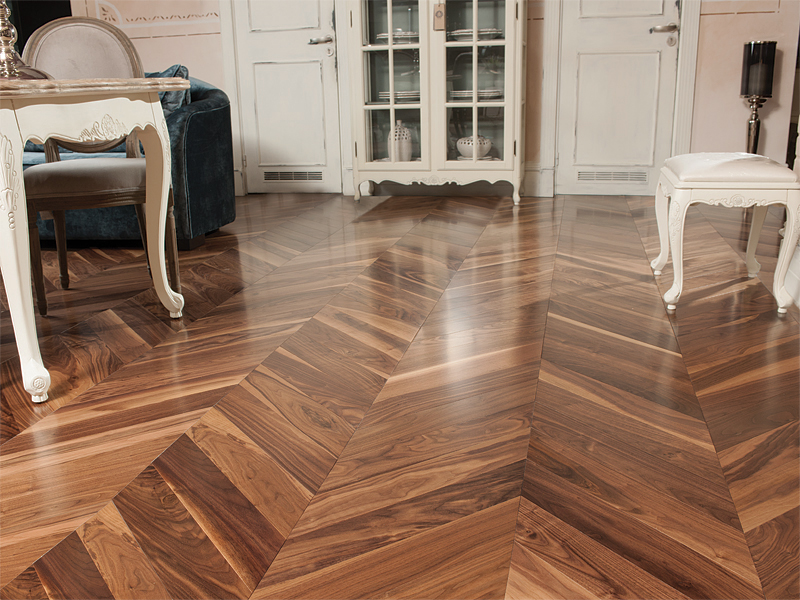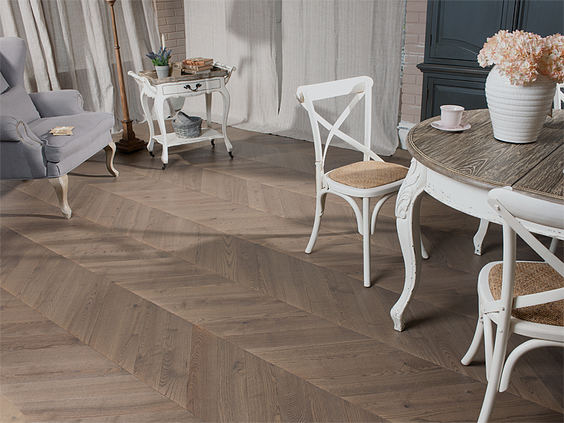 Современные технологии позволяют делать паркет для укладки елочкой как традиционно массивным, так и увеличенного формата – в виде инженерной доски. А варианты отделки позволят вам либо ощутить себя владельцем древнего замка, либо жителем современной квартиры.
