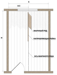 - Установите по базовой отметке направляющую рейку так, чтобы производить укладку справа от неё. Рейка должна быть зафиксирована на основании, чтобы исключался её сдвиг при установке планок.