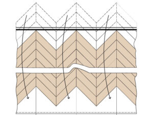 - В упаковках с паркетом типа «Французская ёлка» содержится 50 % планок с левым гребнем и 50 % планок с правым гребнем.